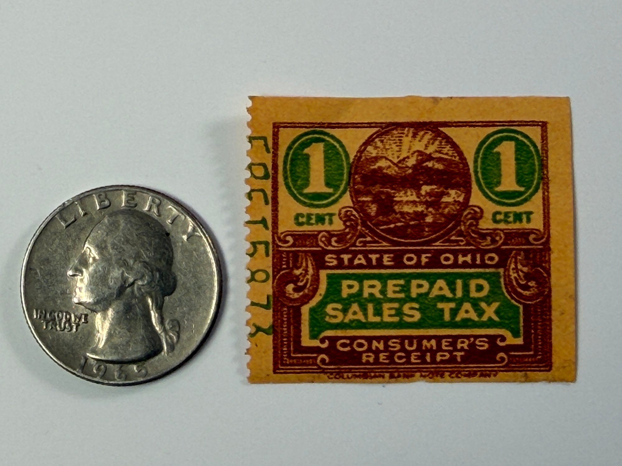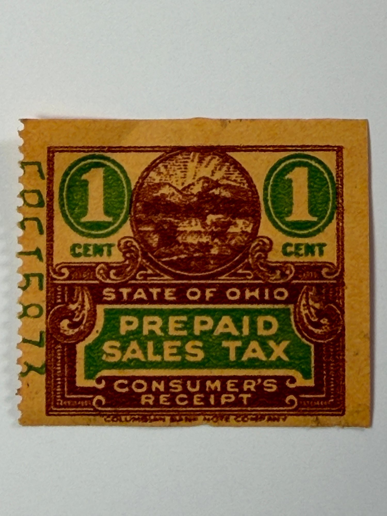 Vintage Collectible Is A 1-cent Ohio Prepaid Sales Tax Consumer Receipt Stamp