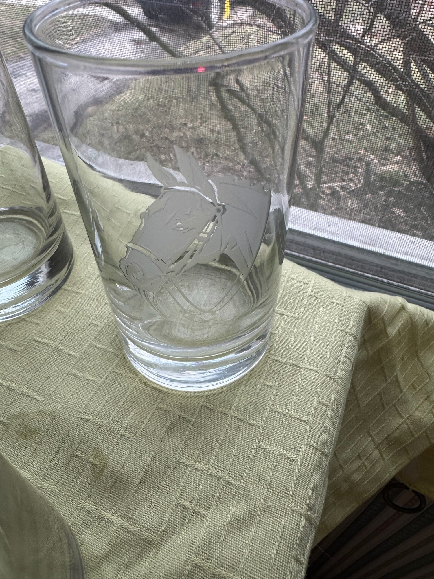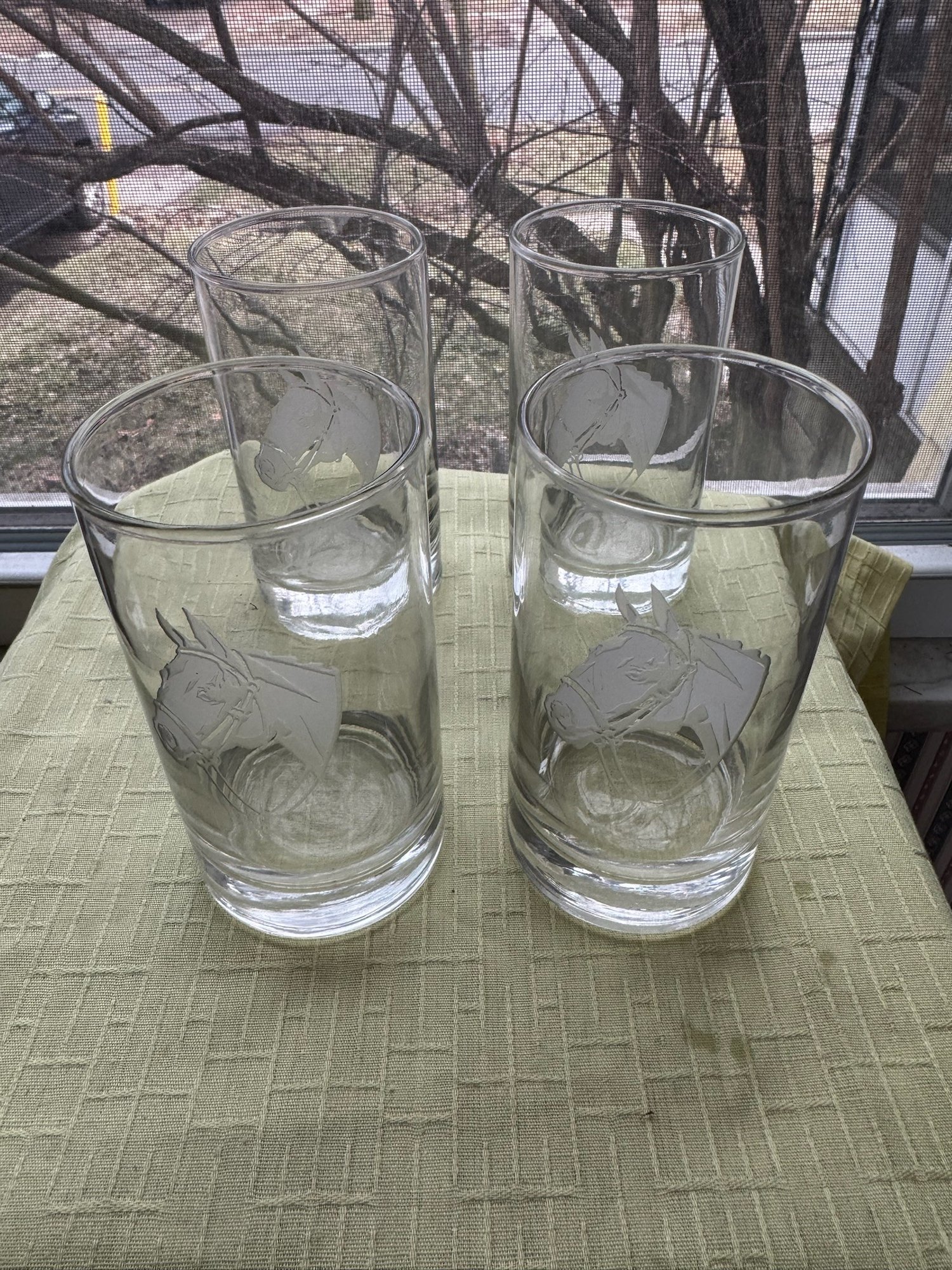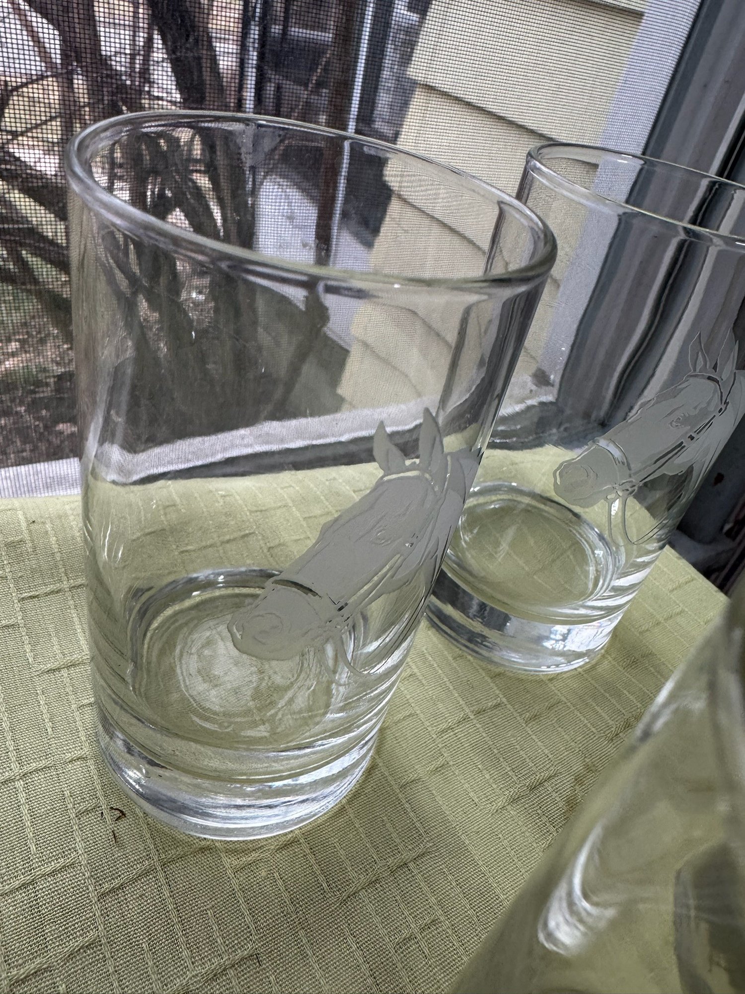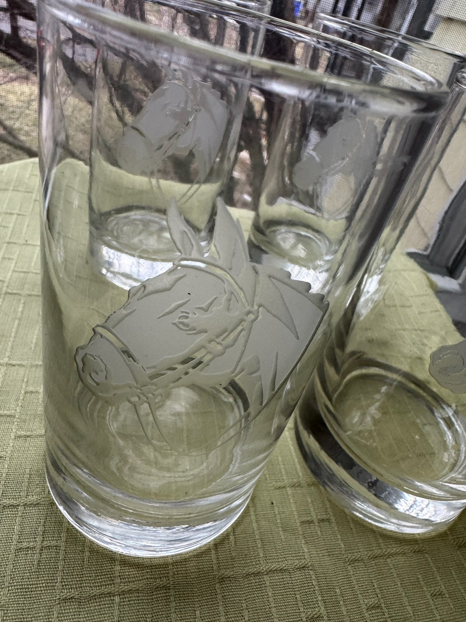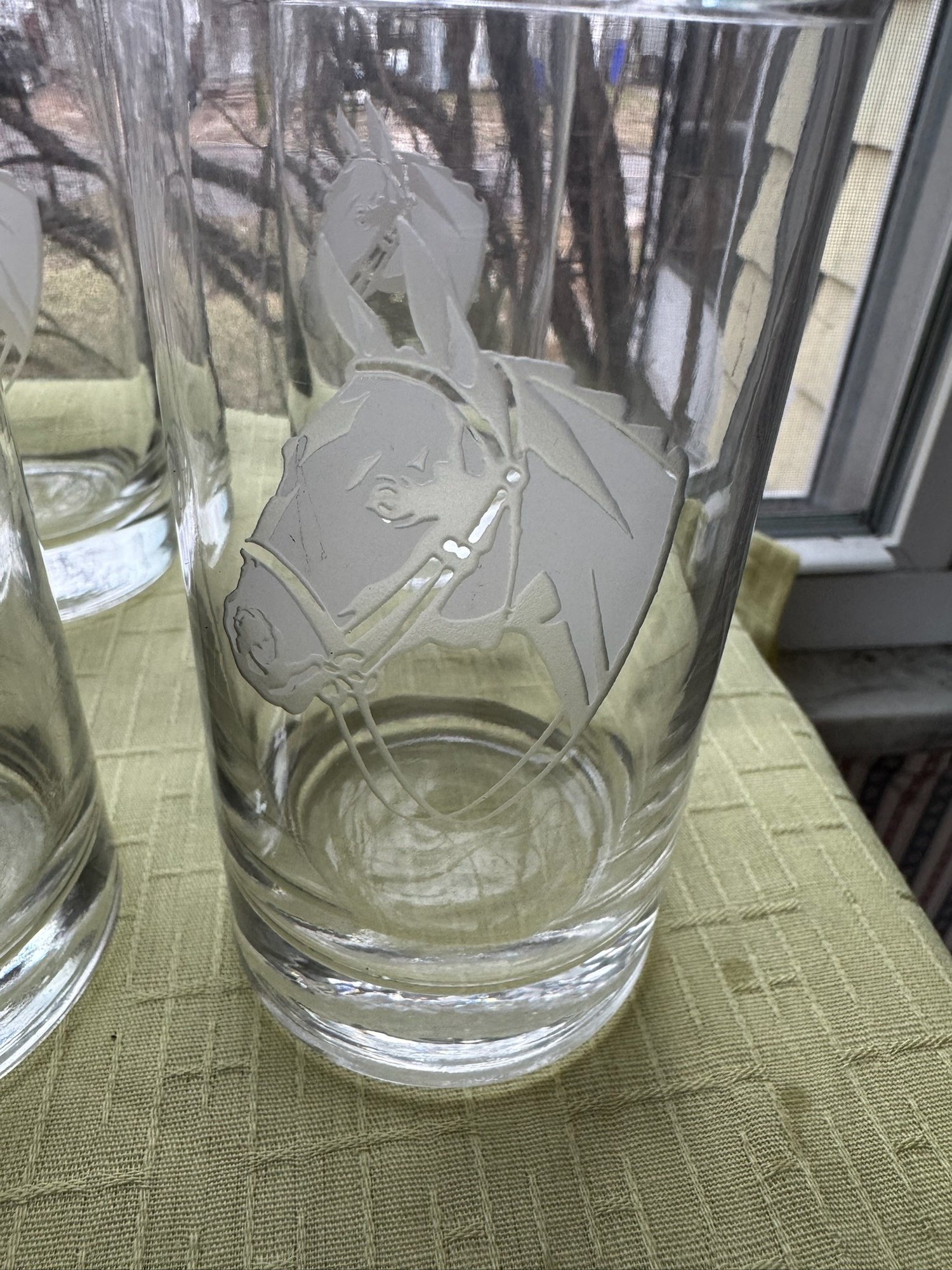 Vintage Etched Horse Drinking Glasses Lot Of Four