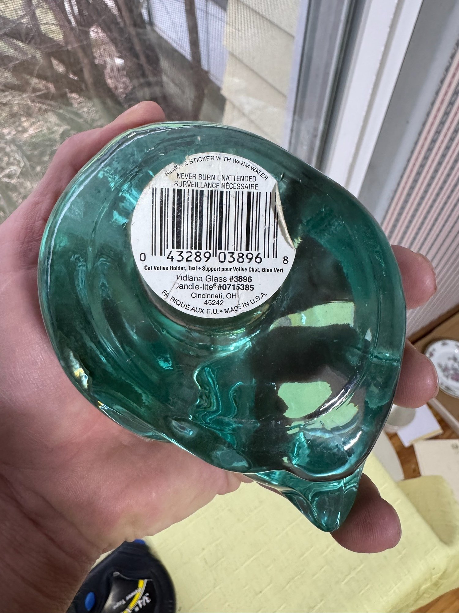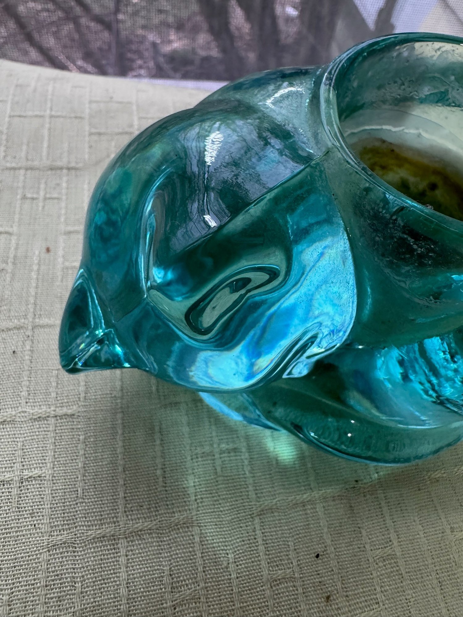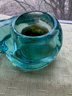 Vintage Indiana Glass Teal Blue/green Sleeping Cat Votive Candle Holder