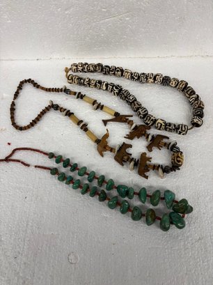 3 NECKLACES (AFRICAN ANIMALS, STONE)