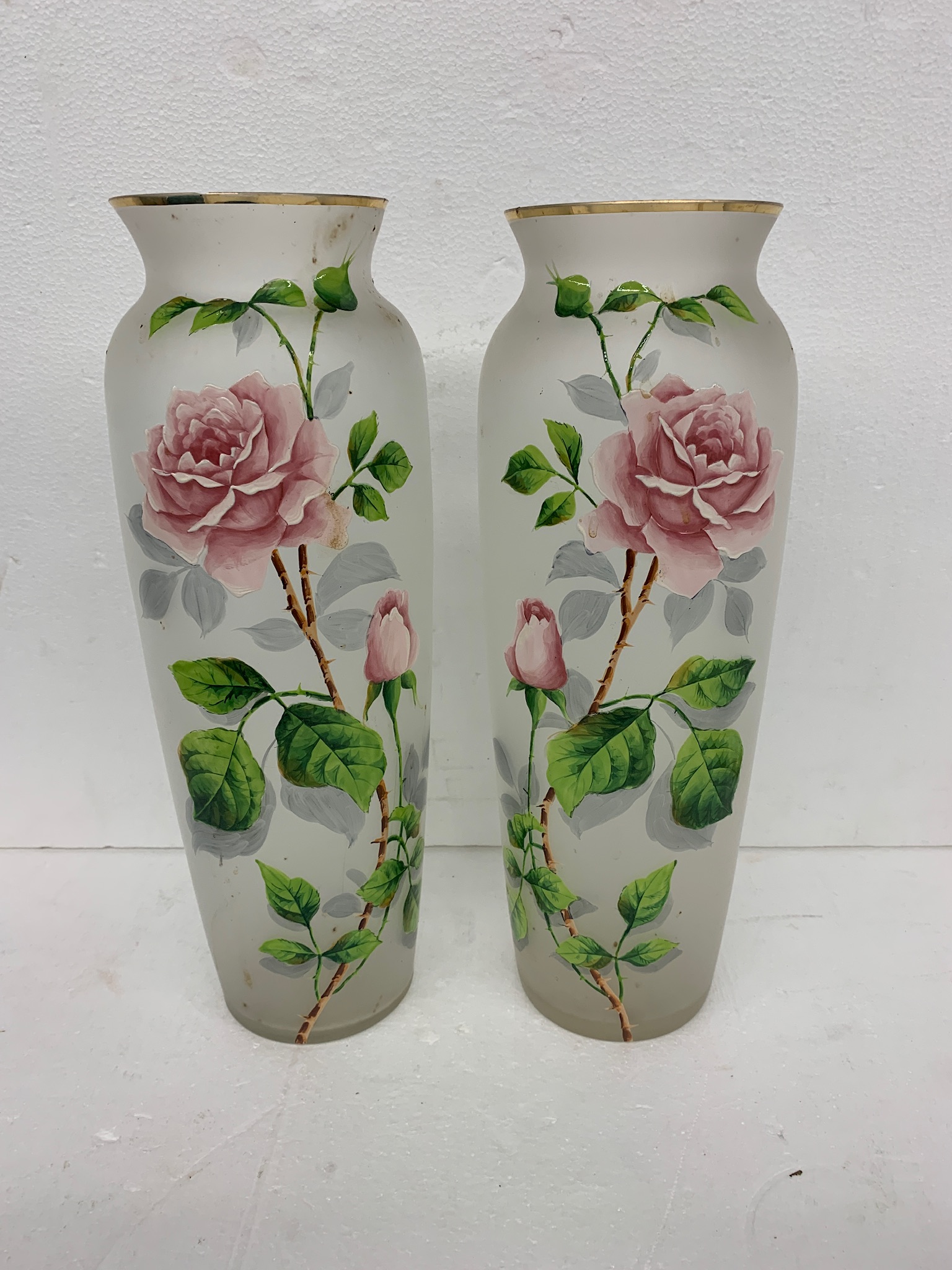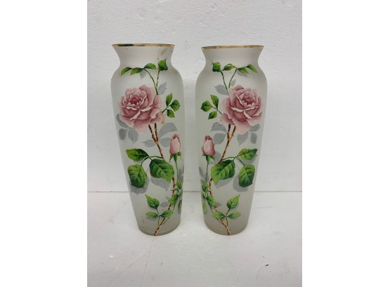 Pair Of 15 Inch Clam-broth Bristol Vases