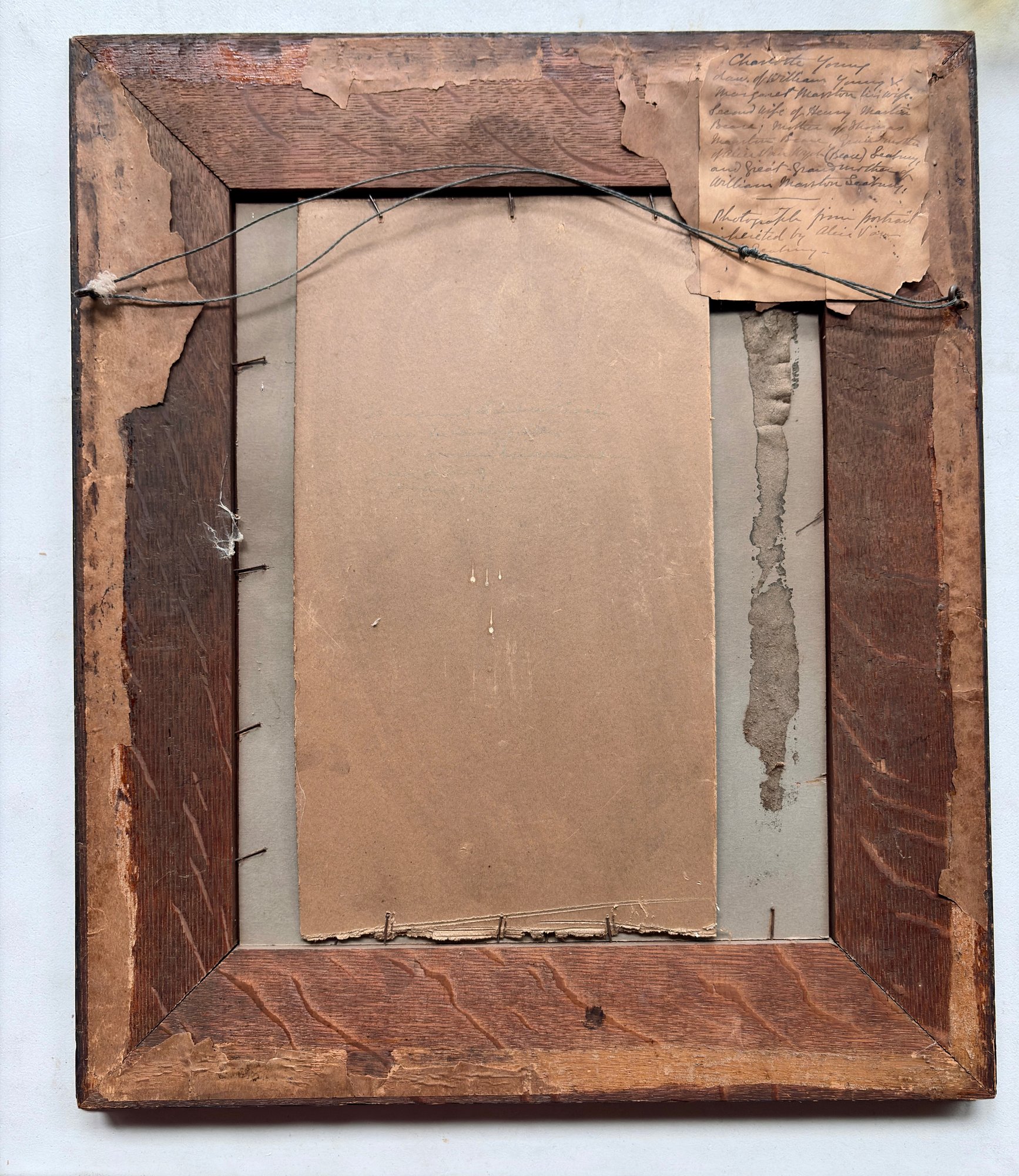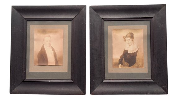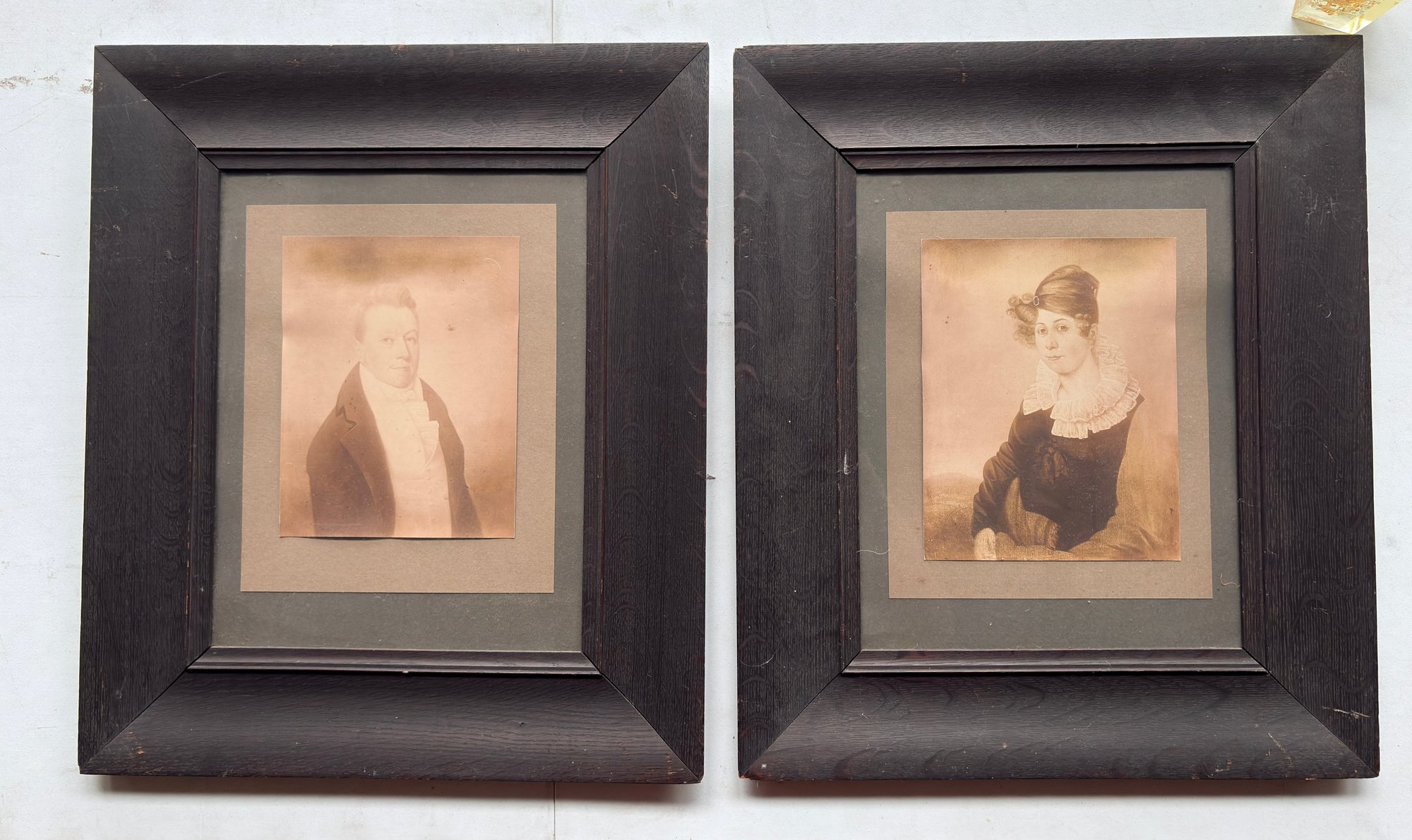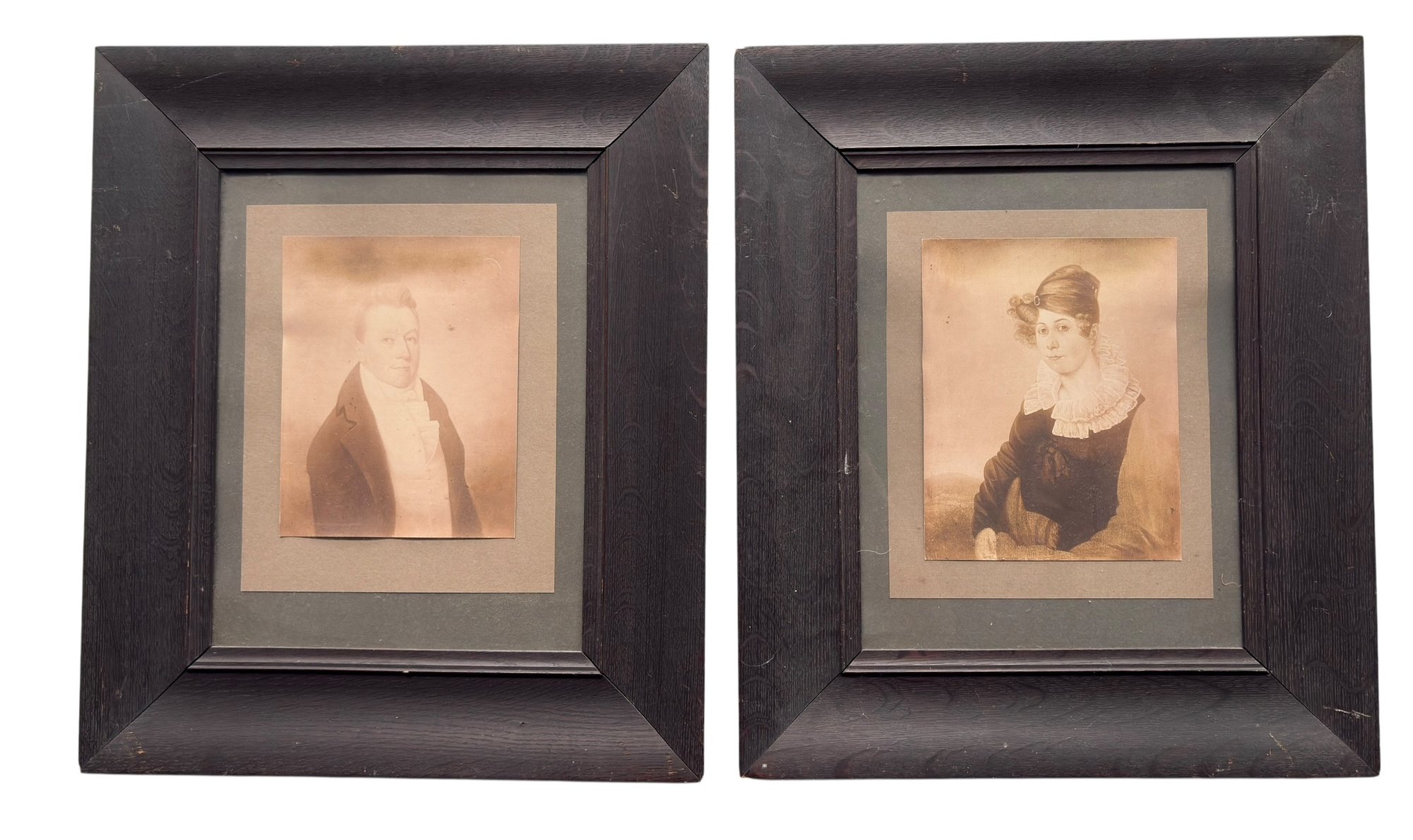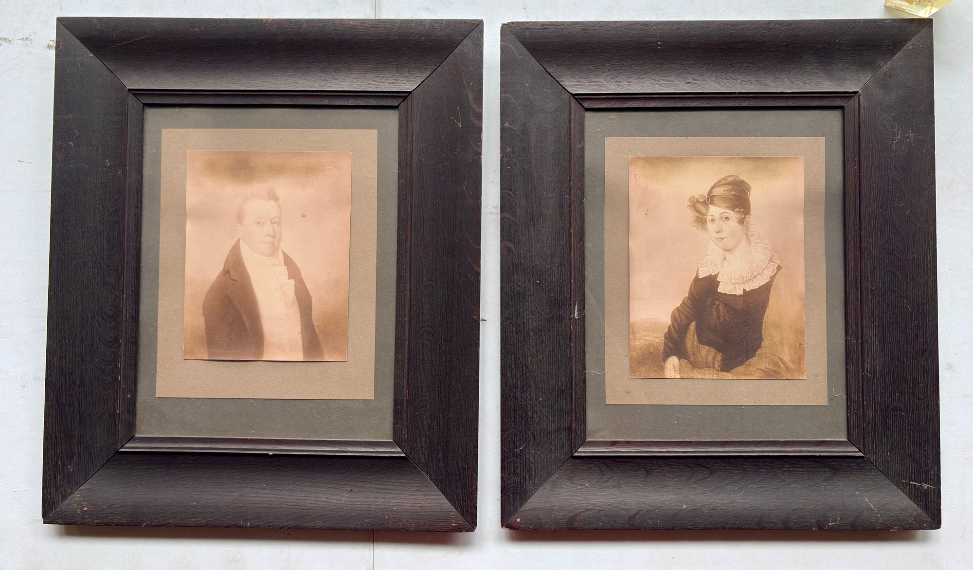 Pair Of Early Photographs In Oak Frames With Lineage On Back - 17.5x21