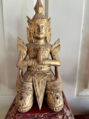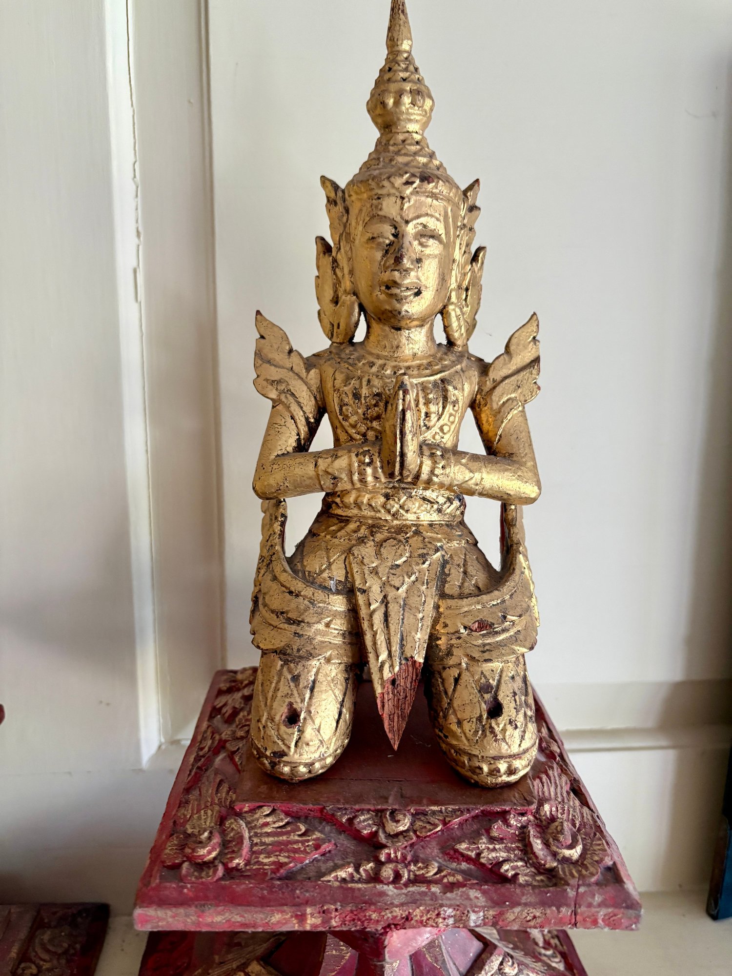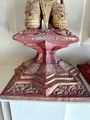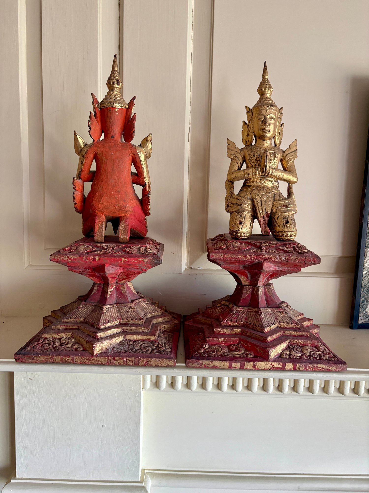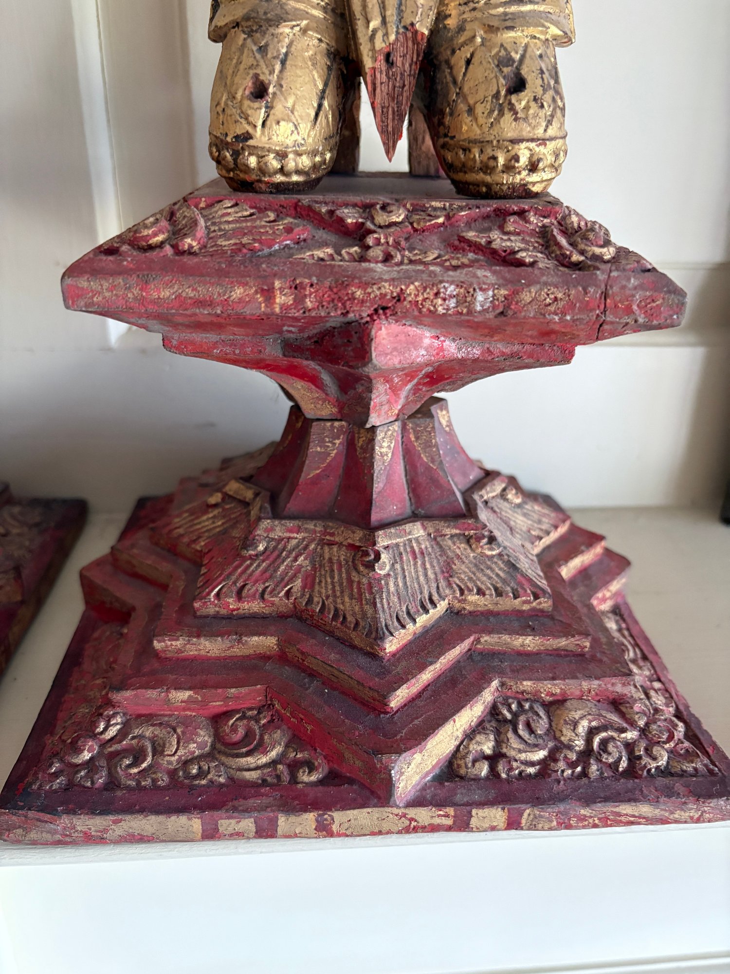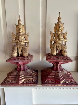 Pair Of Wood Carved Thai Figures - 15 Inch