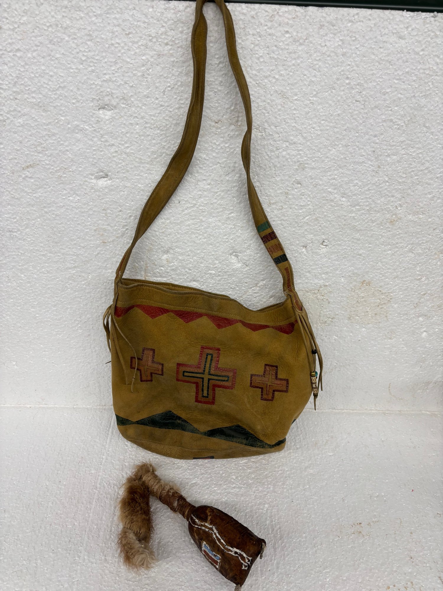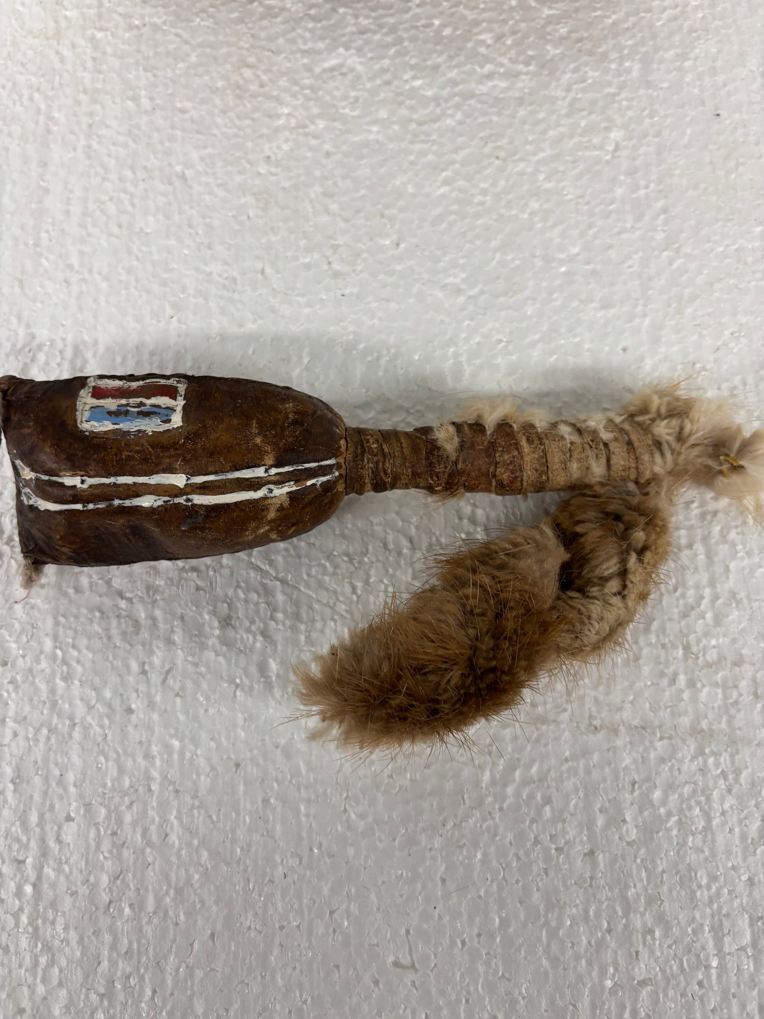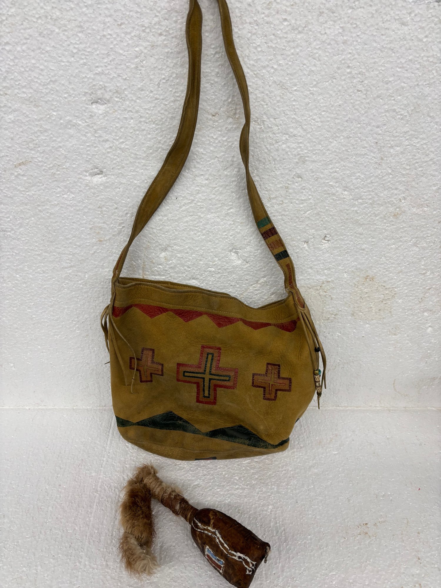 NATIVE AMERICAN BAG W/RATTLE. BAG 10x11