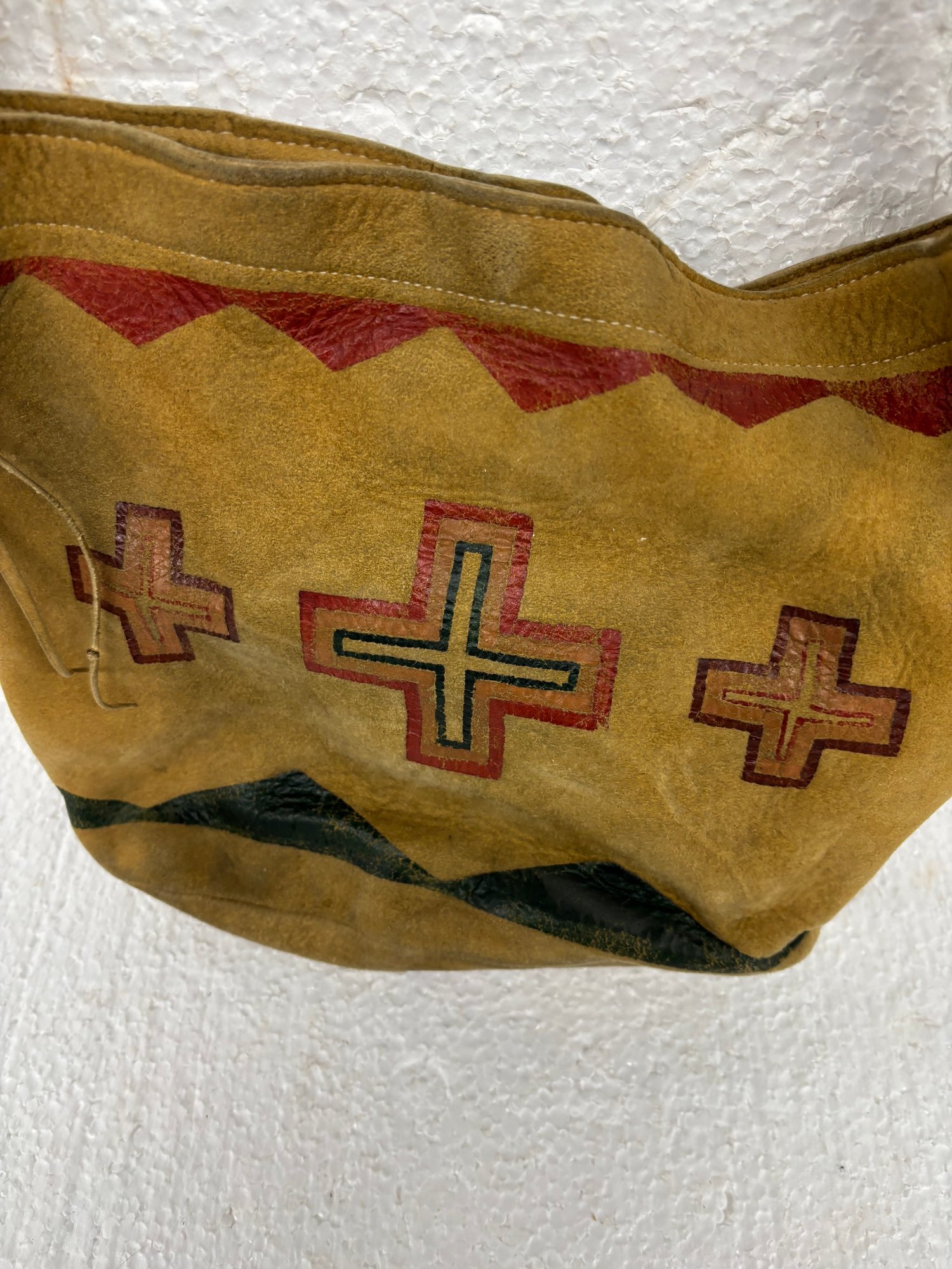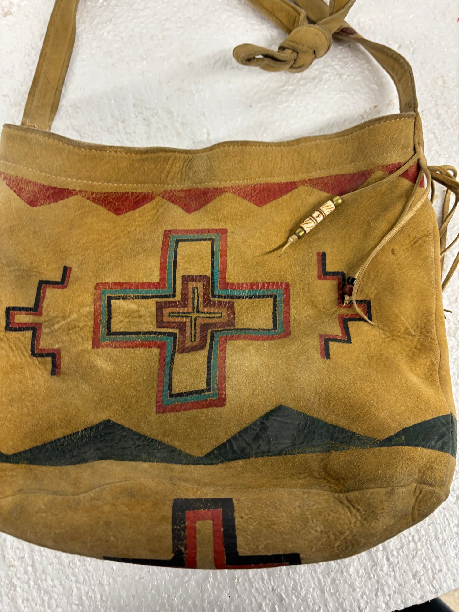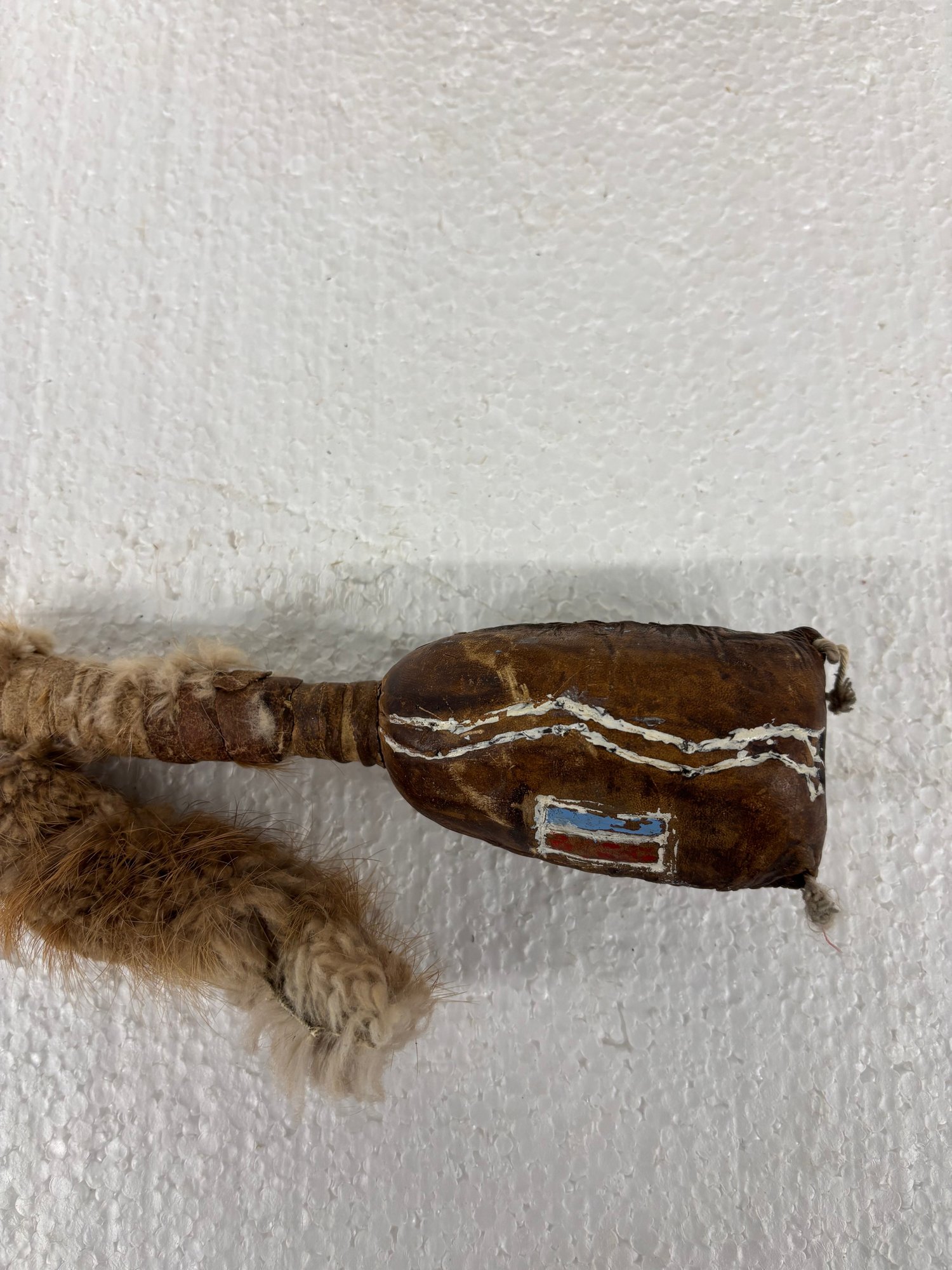 NATIVE AMERICAN BAG W/RATTLE. BAG 10x11
