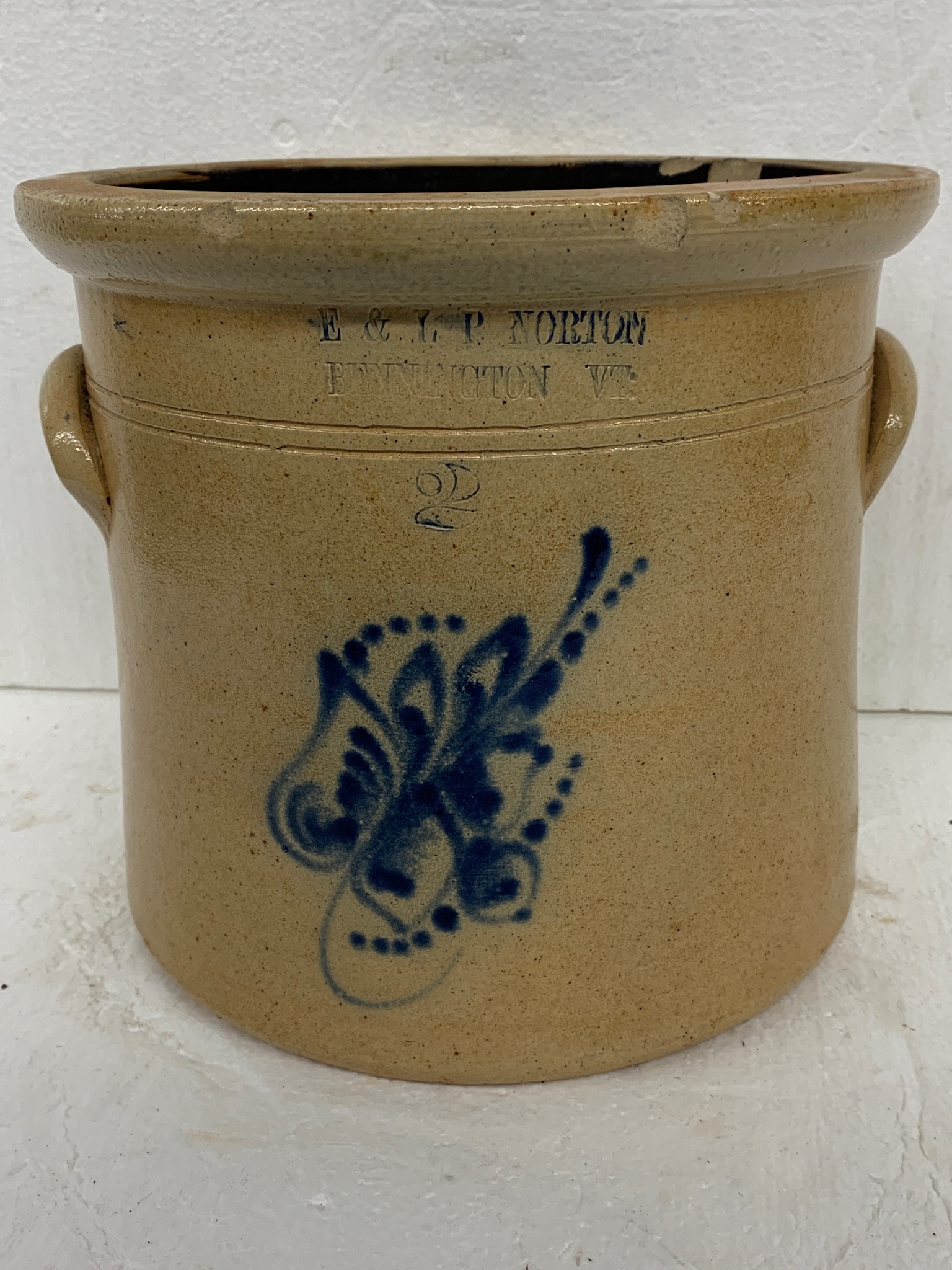 Blue Decorated 2 Gallon Norton Crock