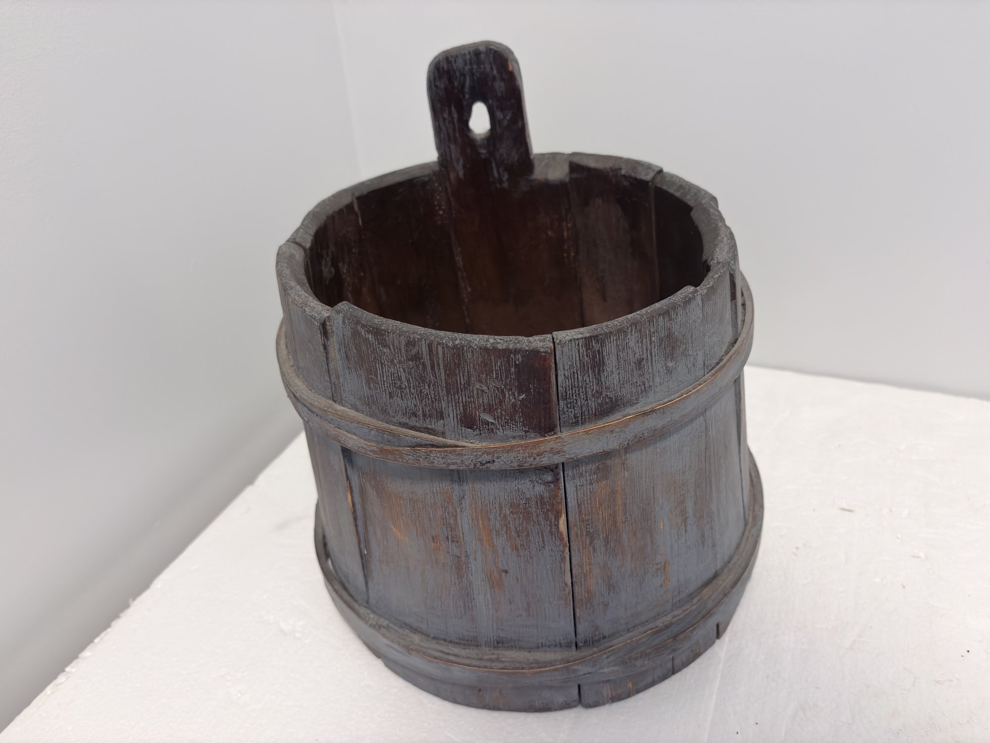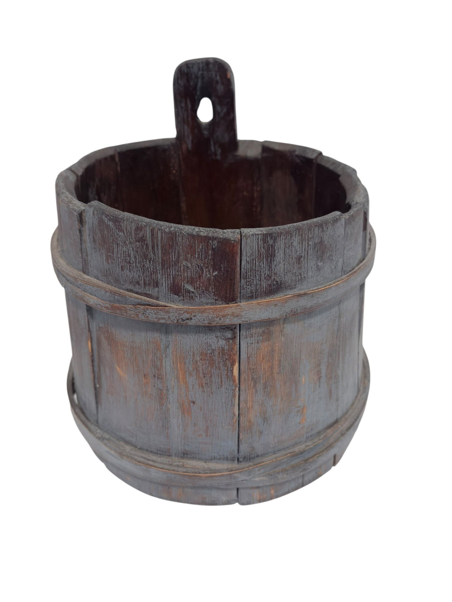 Blue Wash Painted Sap Bucket - 9x10x9