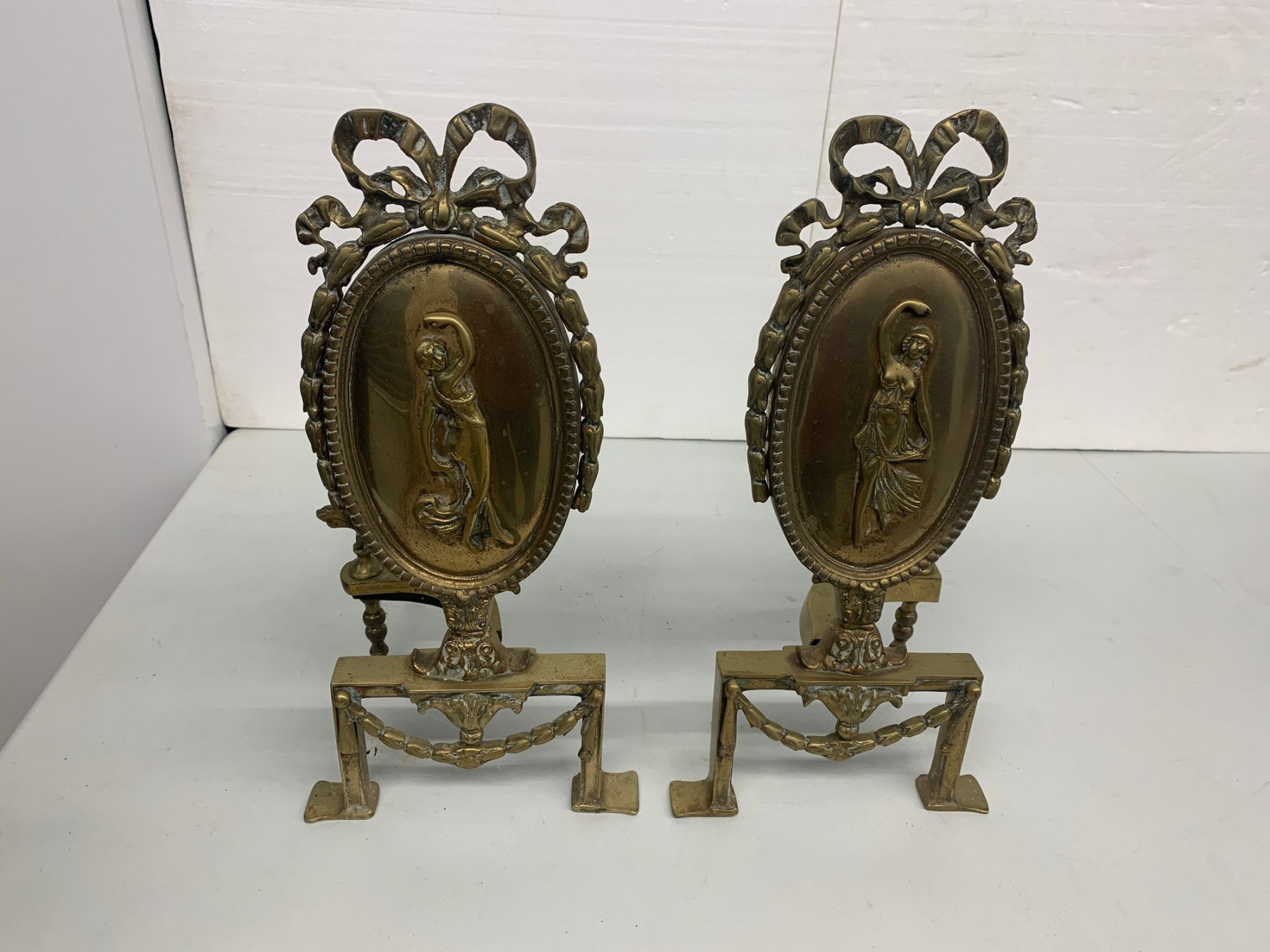 Brass French Style Andirons - 16 Inch Tall - 19 Inch Deep