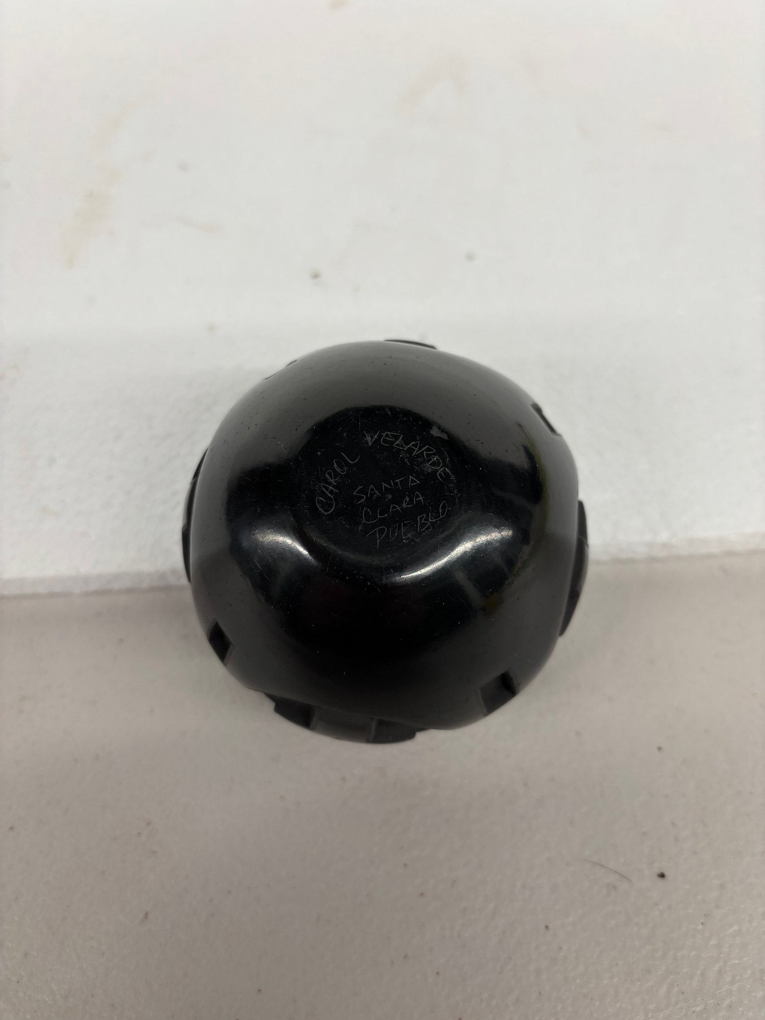 CAROL VELARDE SIGNED SANTA CLARA POT 2 INCH OPENING X 2 1/4