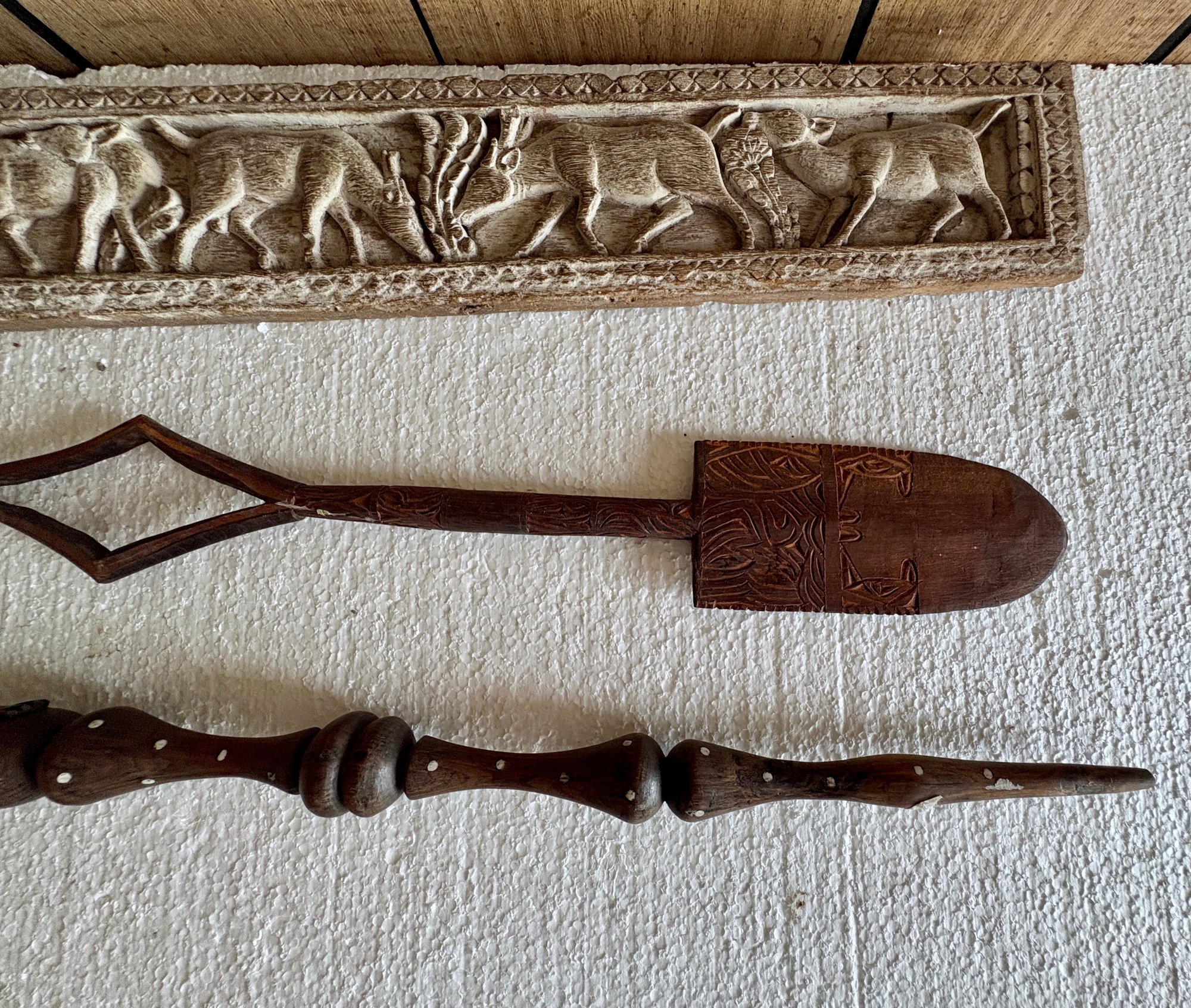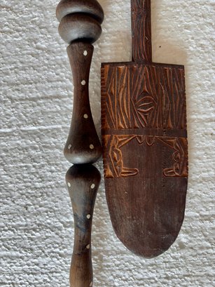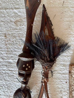 Carved African Panel And Two Ceremonial Items