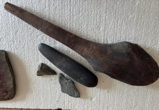 Carved African Plaque And Wood And Stone Tool