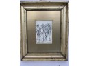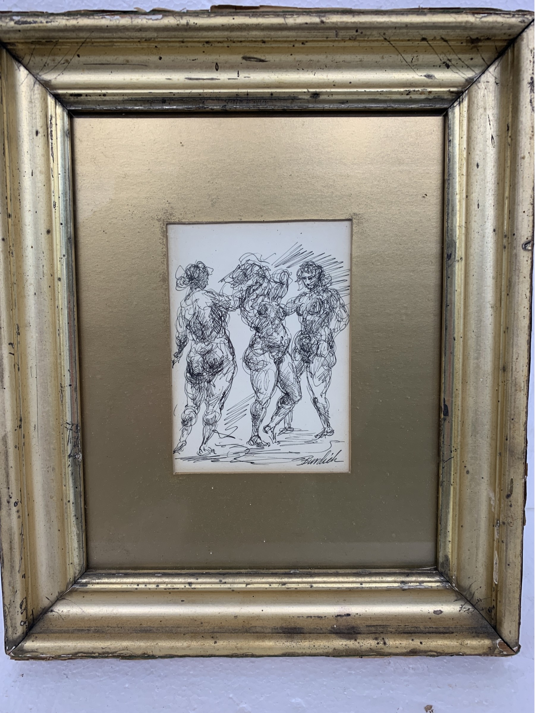 Charles Burdick Signed Pen & Ink Of 3 Nudes In Lemon Gold Frame - 10x12.5