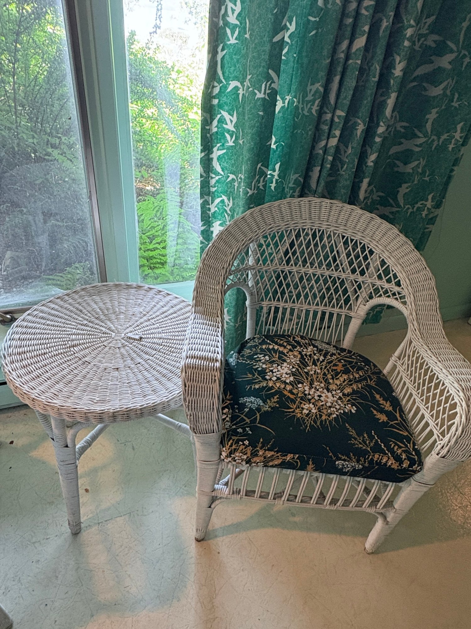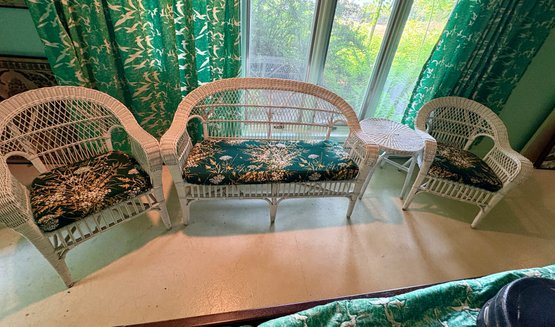 Four Piece White Wicker Set With Cushions
