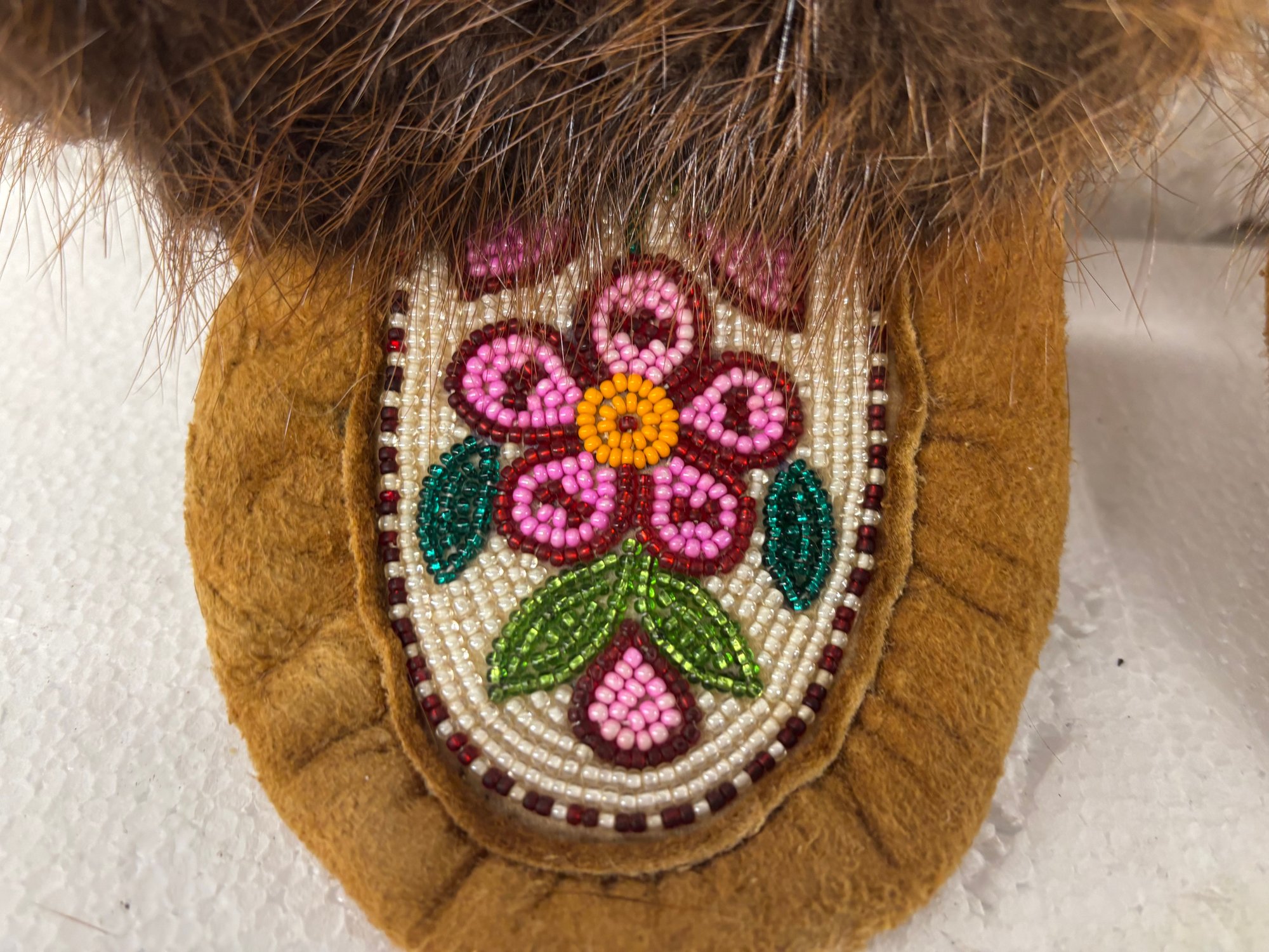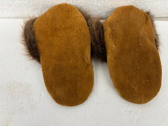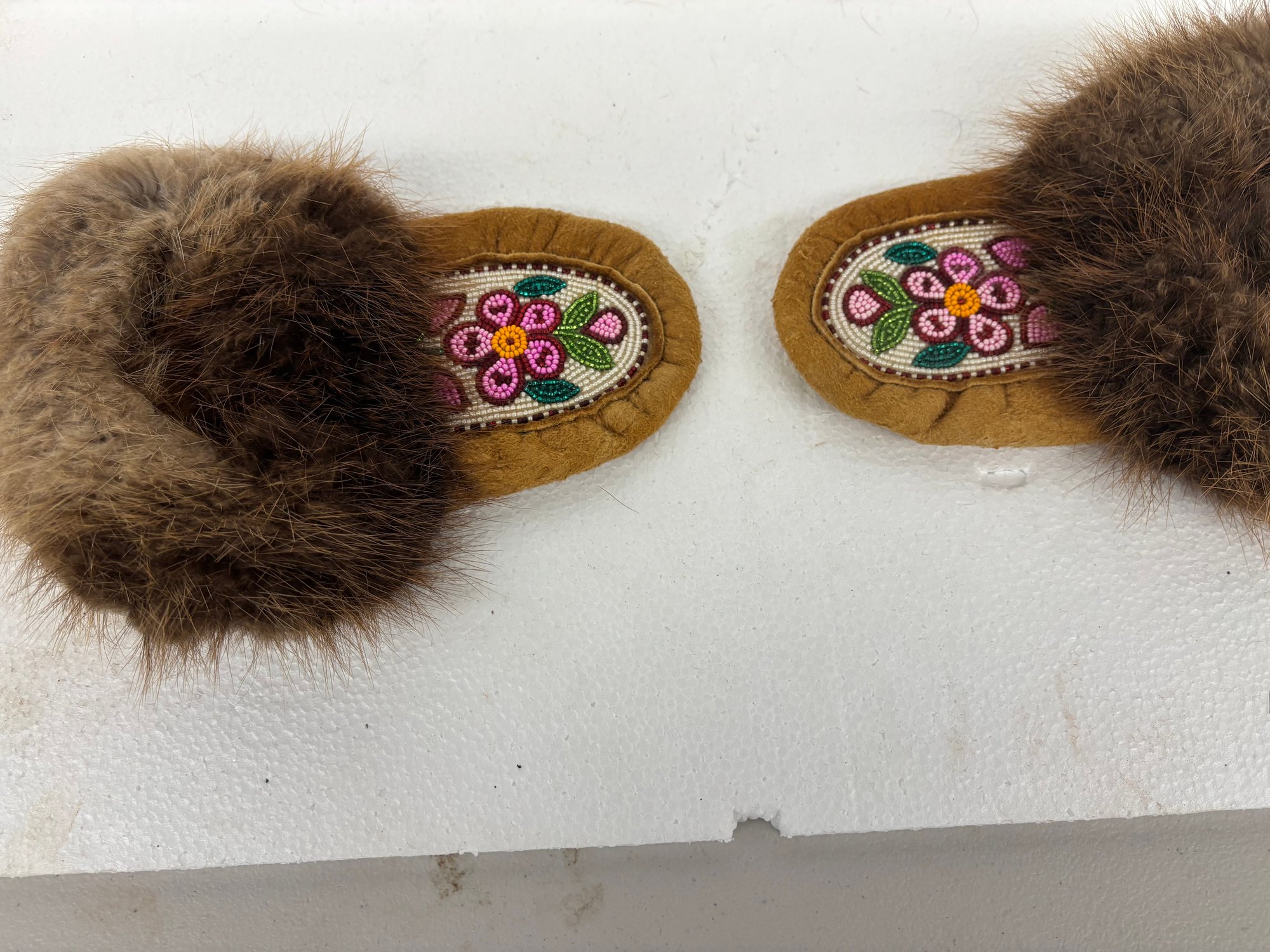FUR DECORATED NATIVE AMERICAN MOCCASINS 4X 9