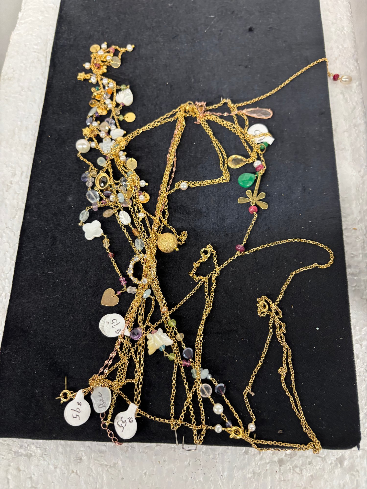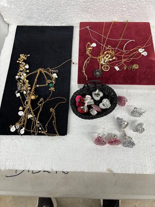 LOT OF NECKLACES W/HEART RINGS