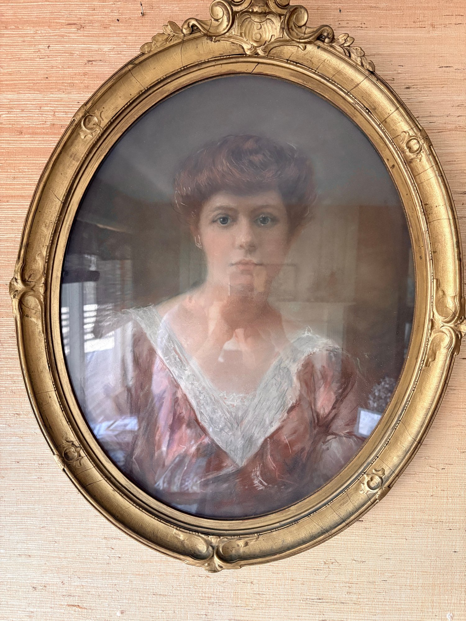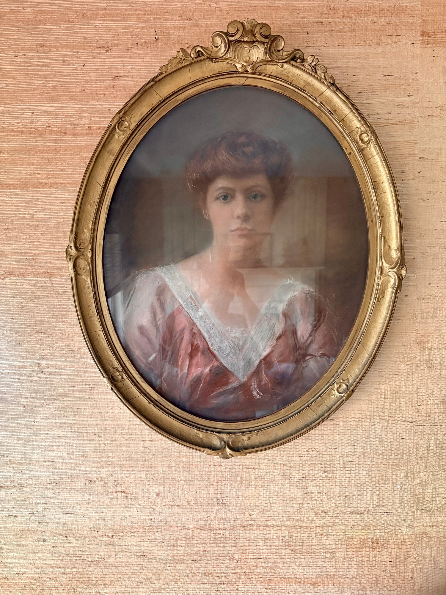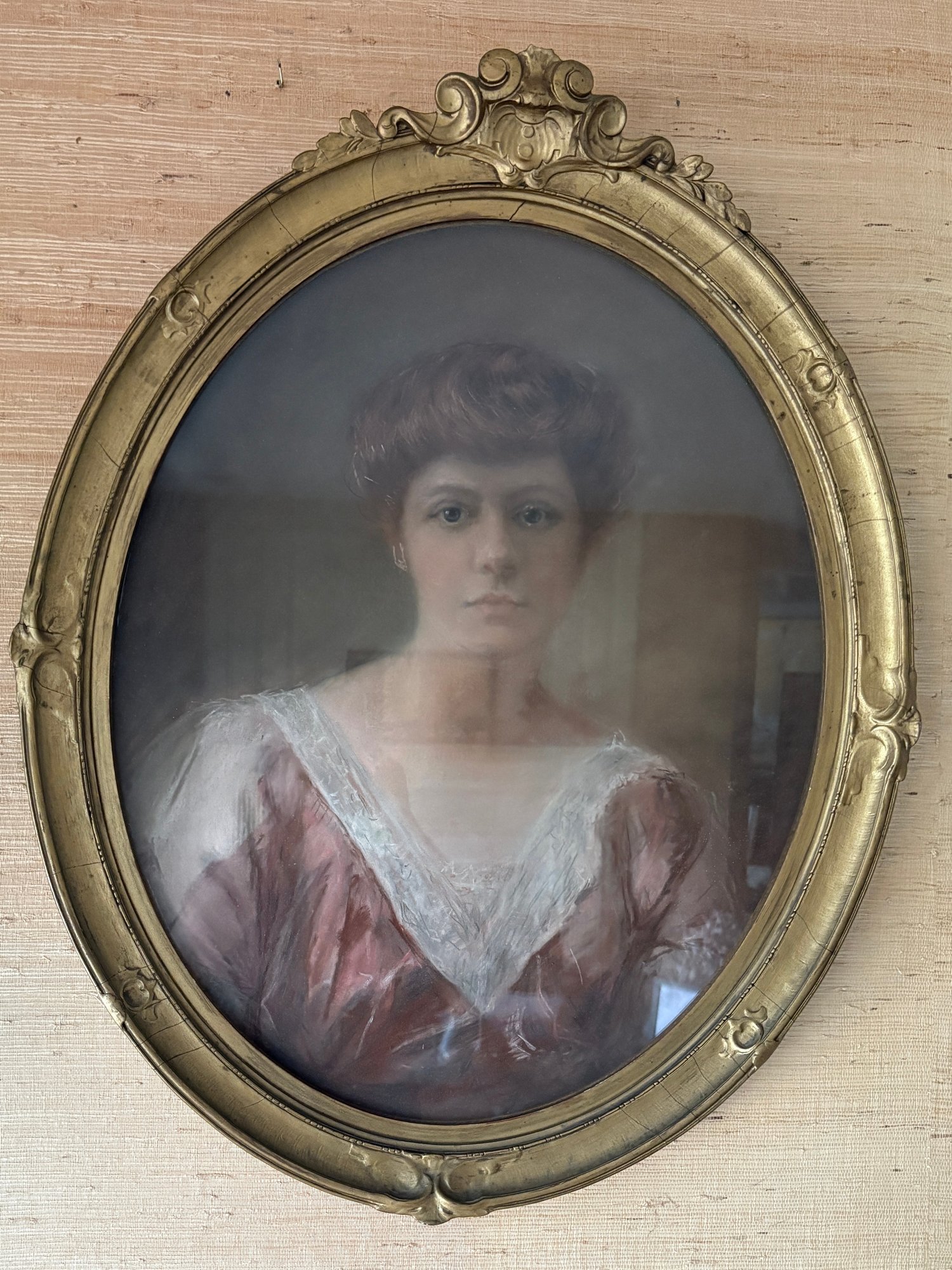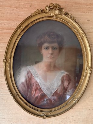 Portrait Of A Lady In A Gold Oval Frame - 24x31