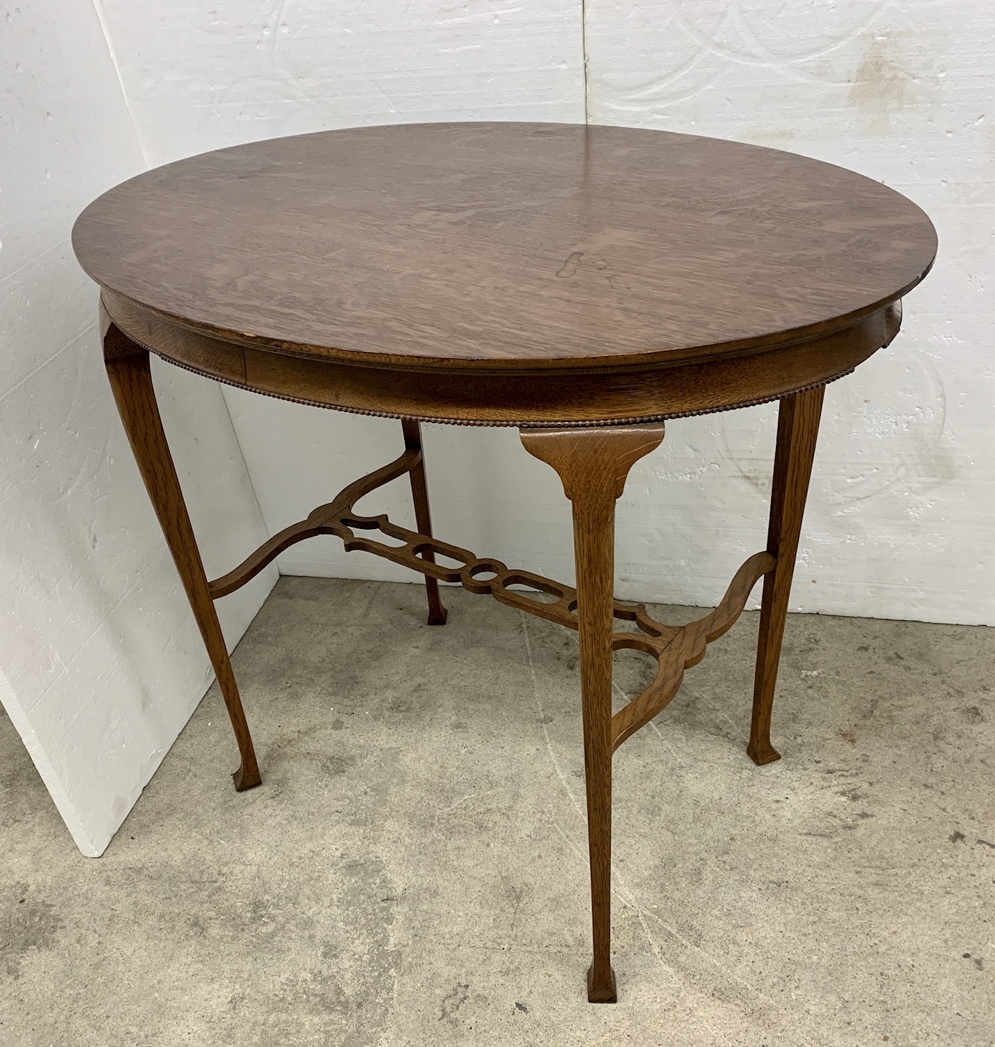 Oval Oak Hall Table With Delicate Stretcher Base. 24x34
