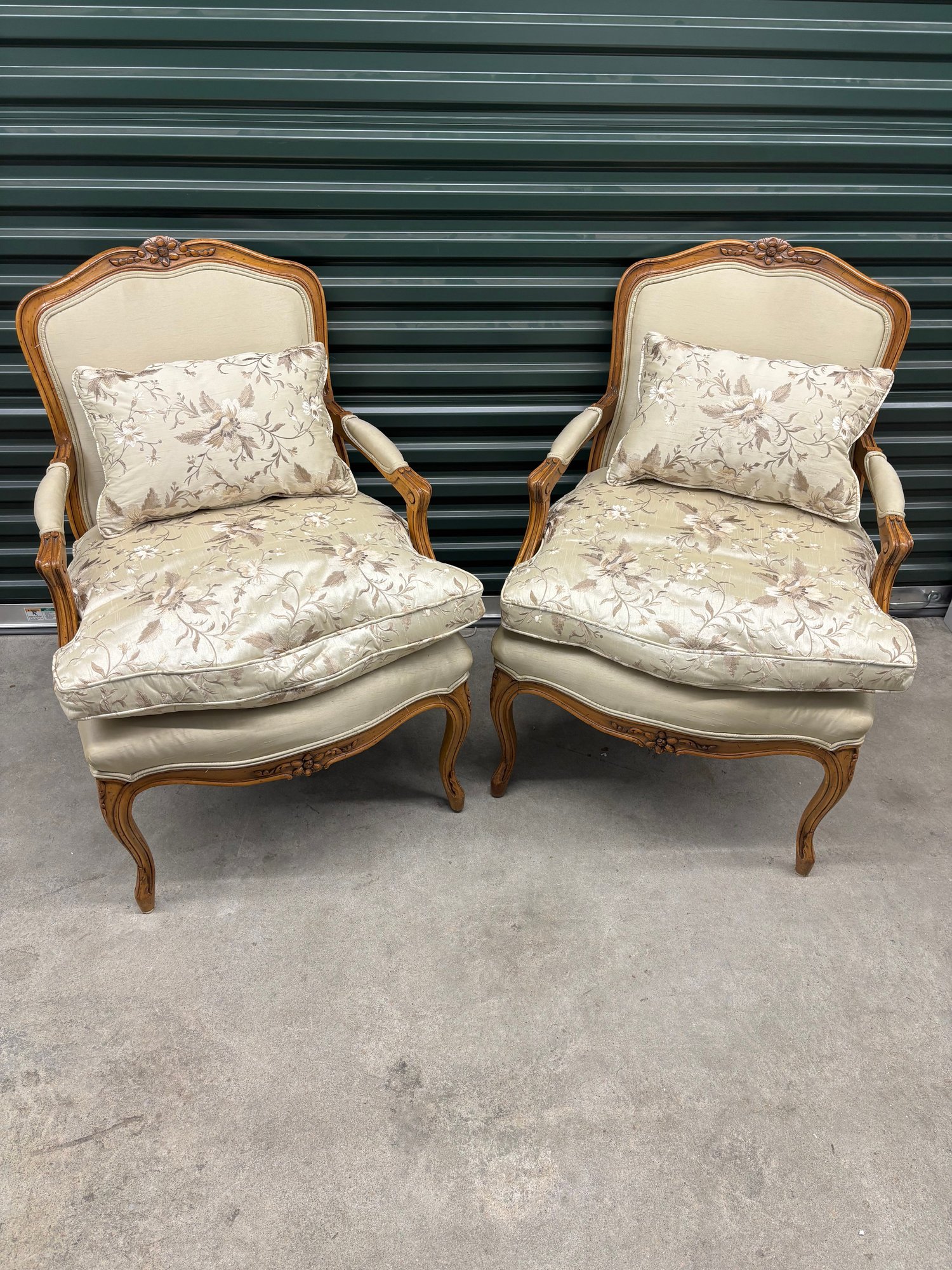 PR SILK UPHOLSTED CHAIRS W/PILLOWS
