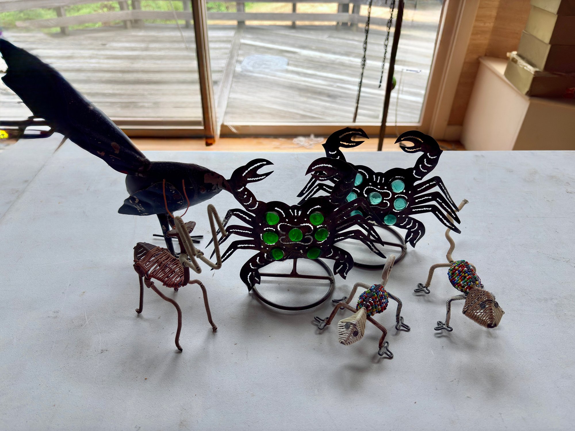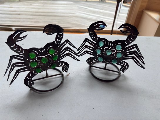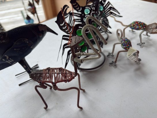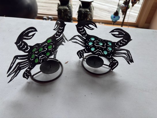 Group Of Artisan Animal Figures Including Pr Of Crab Candle Holders