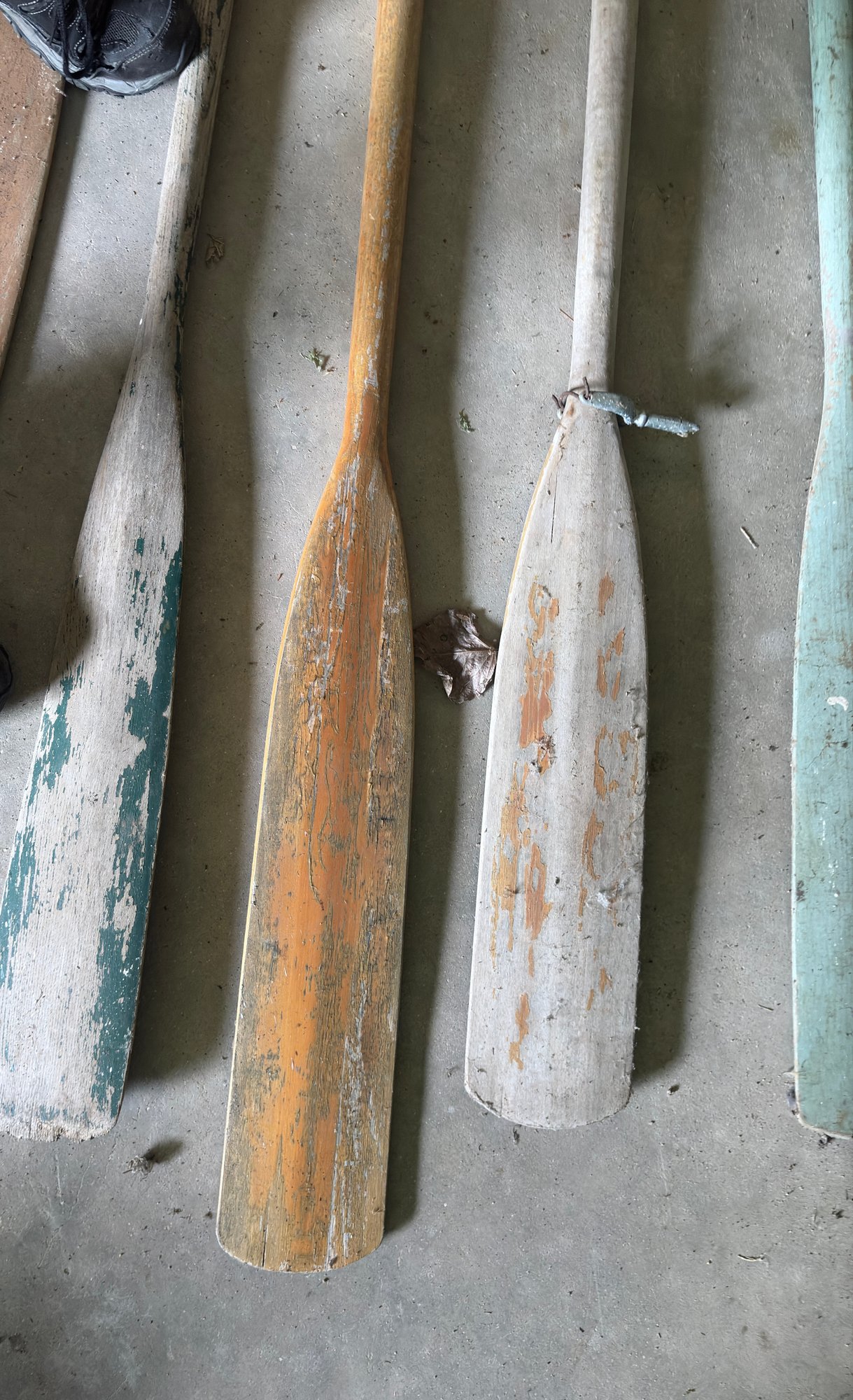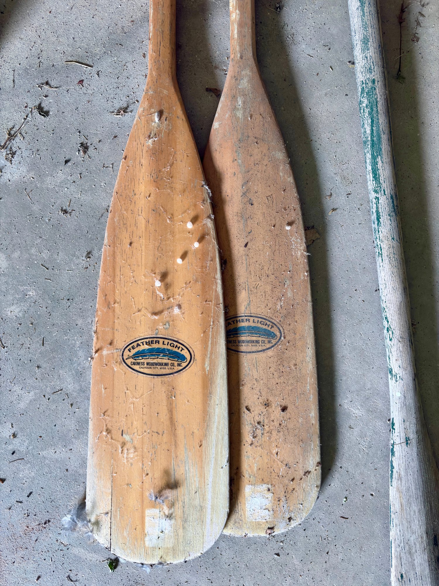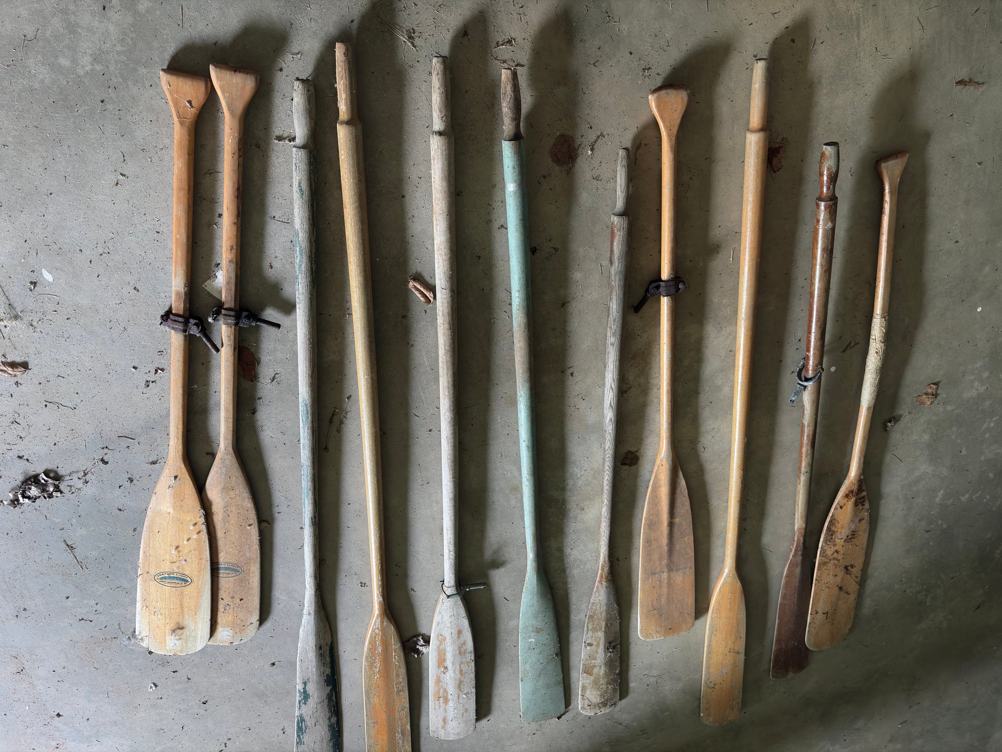 Group Of Wooden Paddles Including A Pair Of Feather Light