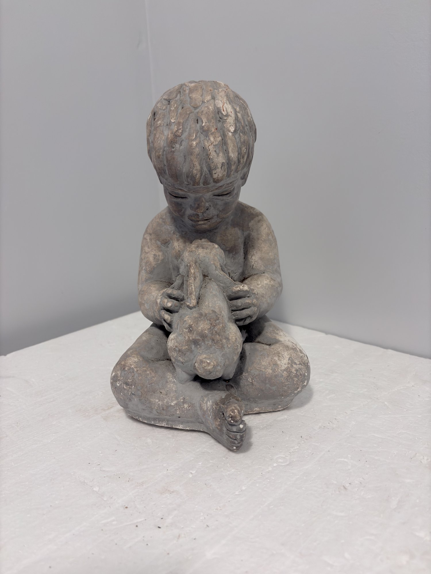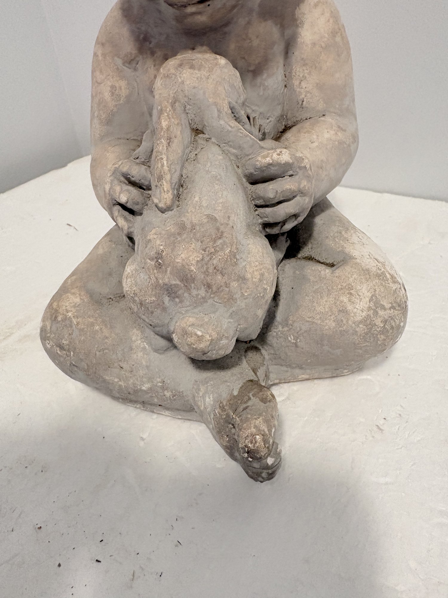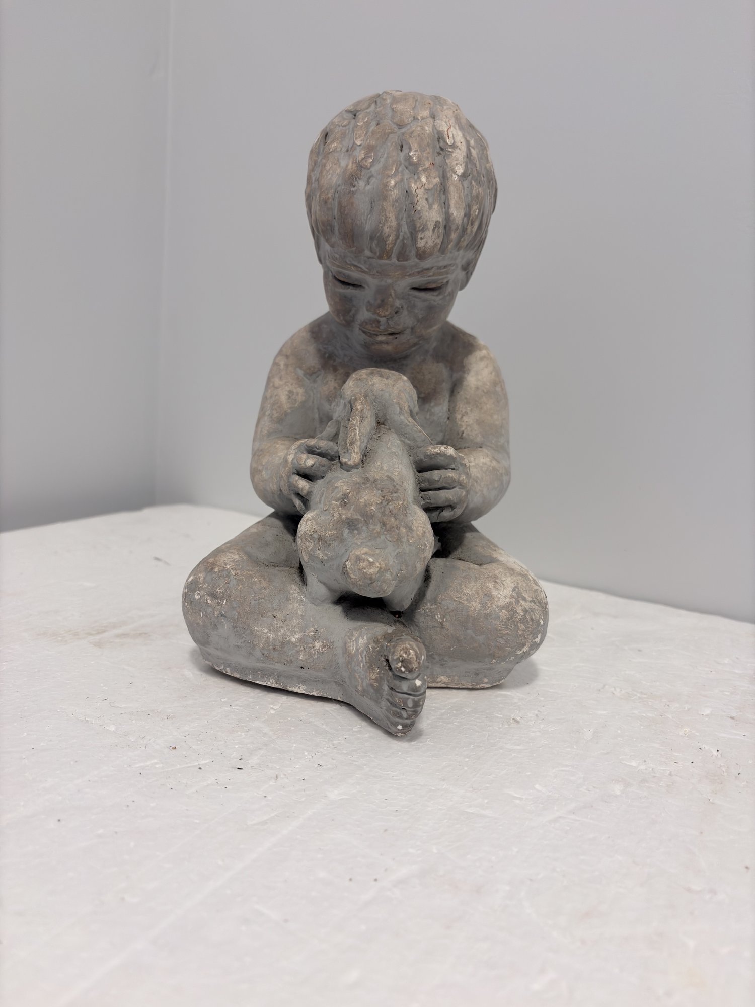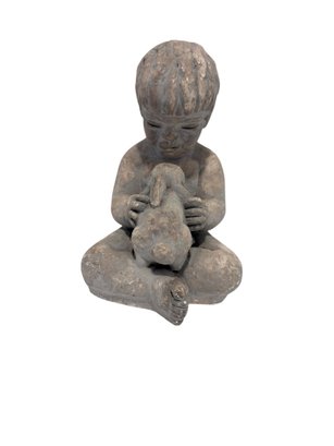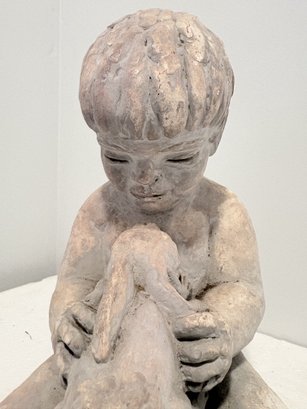 Sculpture Of Boy With Rabbit - 9 Inch Tall - Miro Musulin