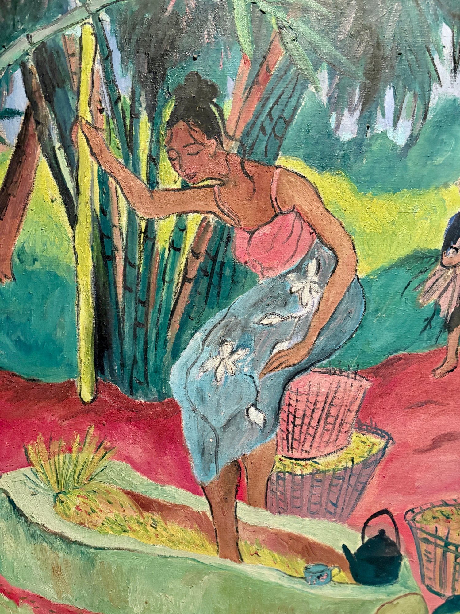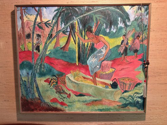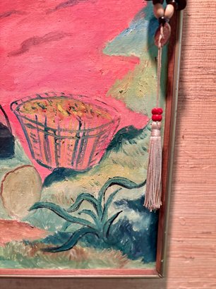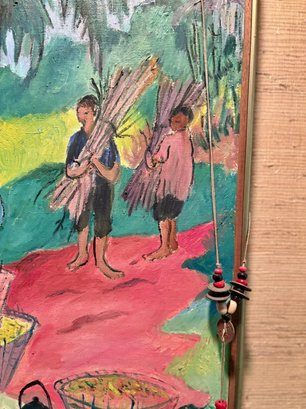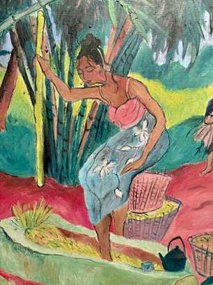 Signed Oil On Canvas - Tropical Setting Gathering Crops - 30x36