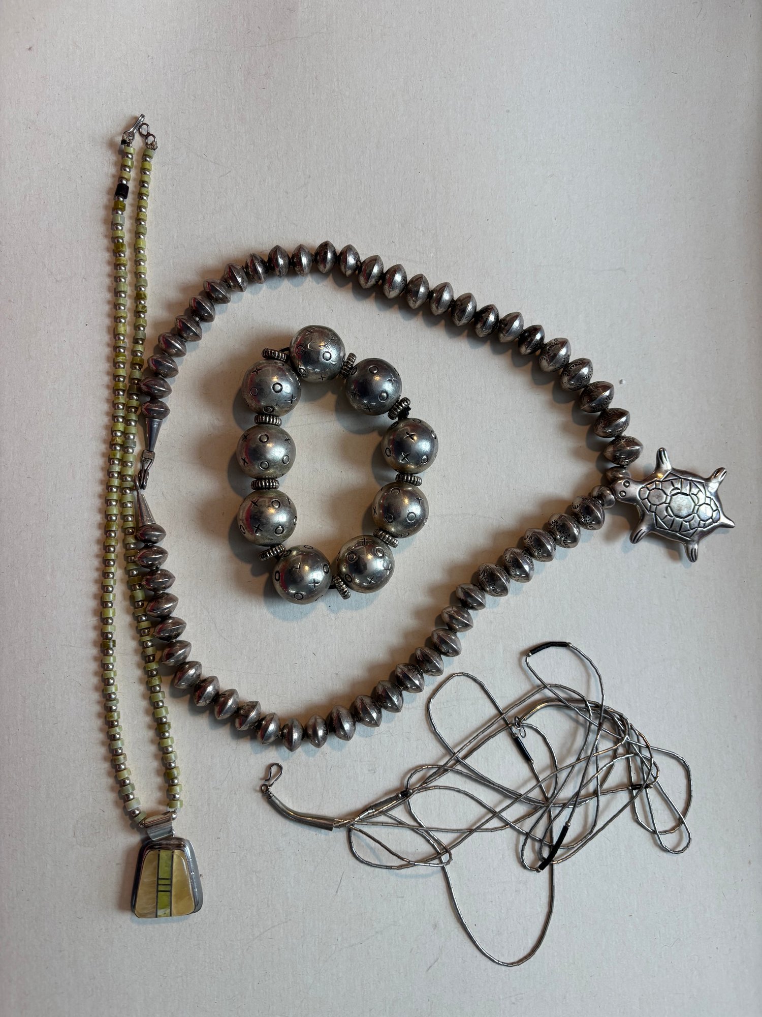SILVER LOT NECKLACE W TURTLE, BRACELET, CHAINS