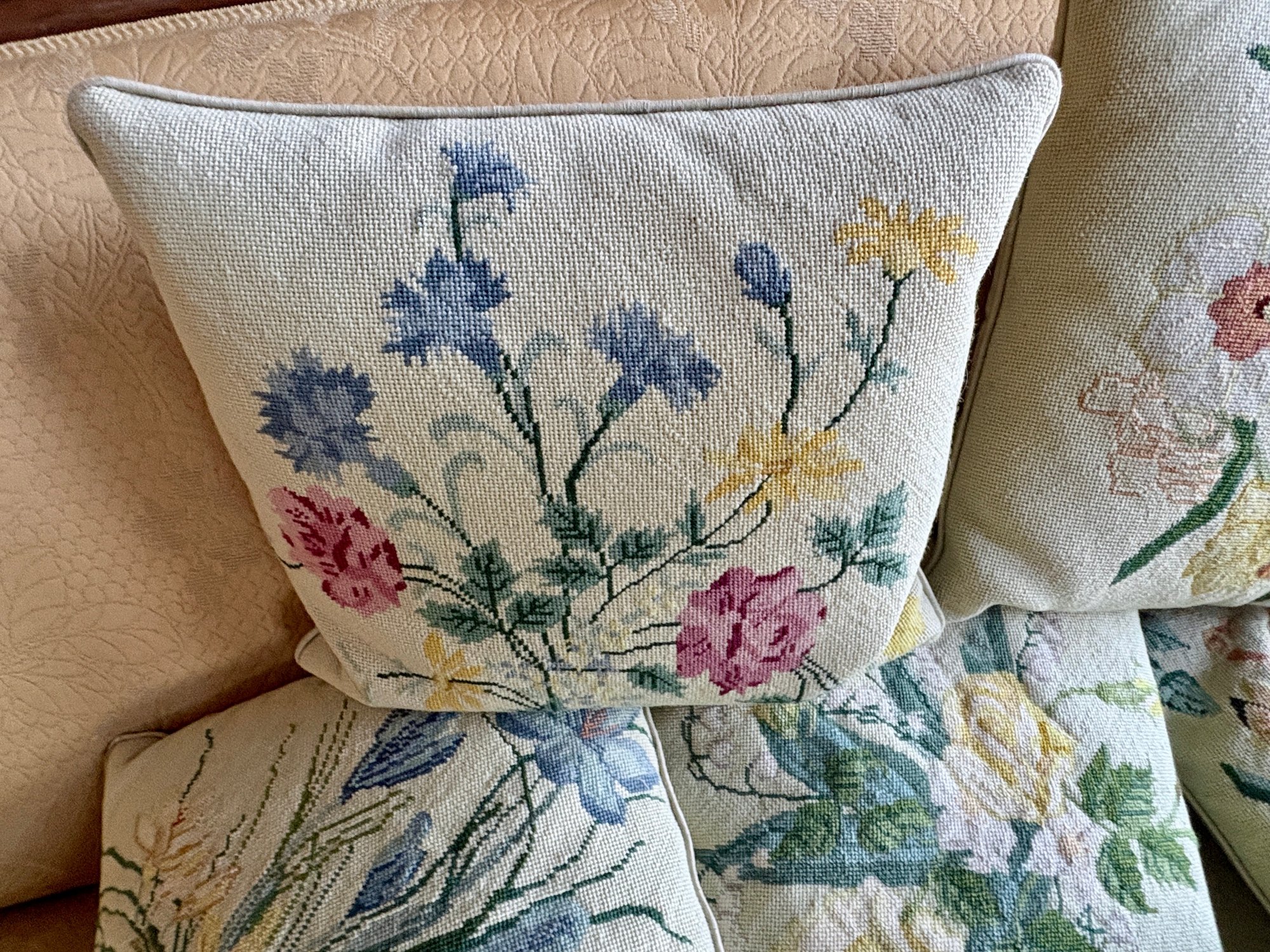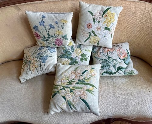 Six Needle Point Pillows - 14 Inch Square