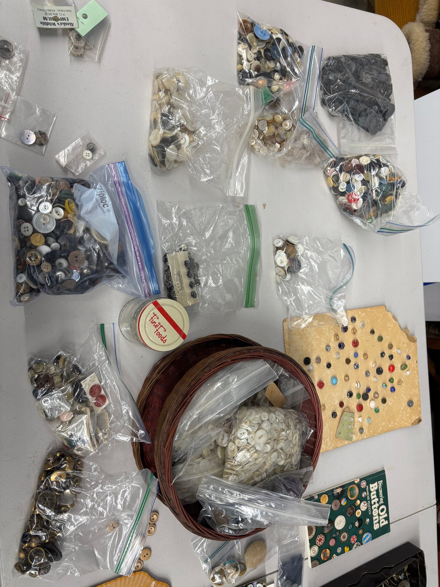 TABLE FULL OF ANTQUE BUTTONS