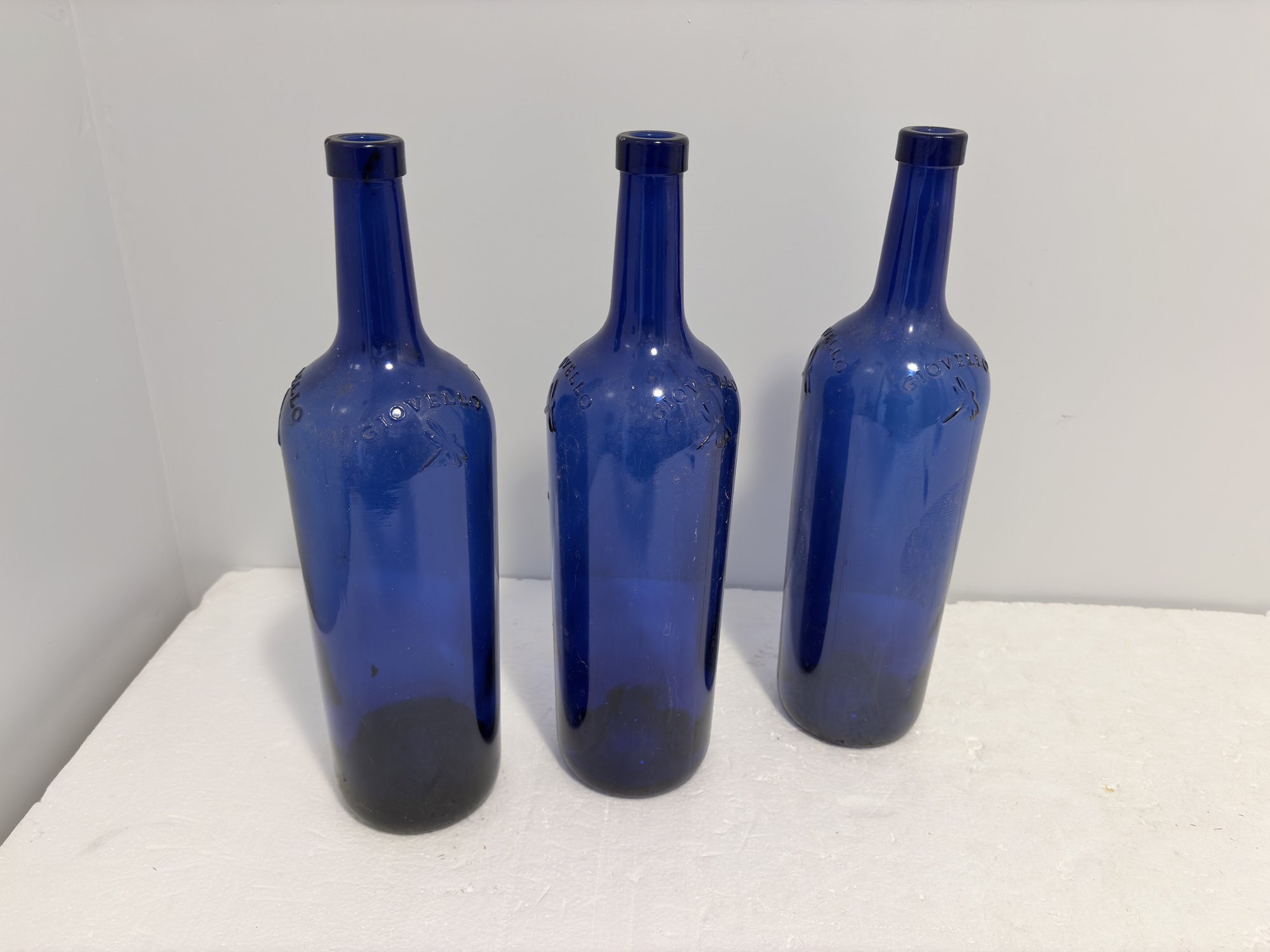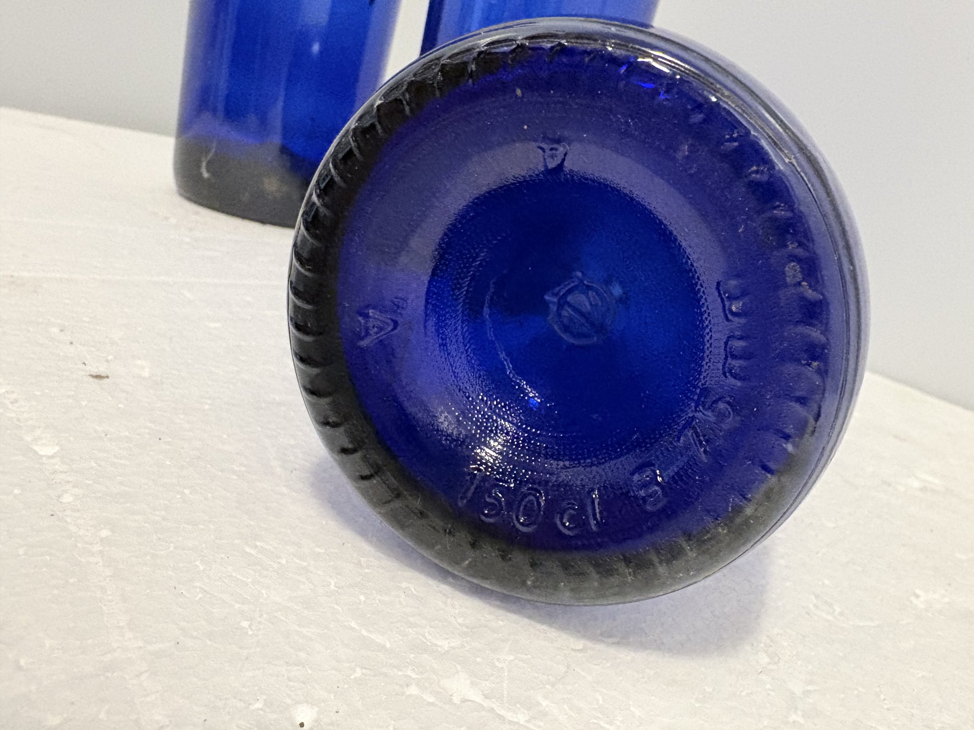 Three Cobalt Blue 14 Inch Bottles - Giovello -
