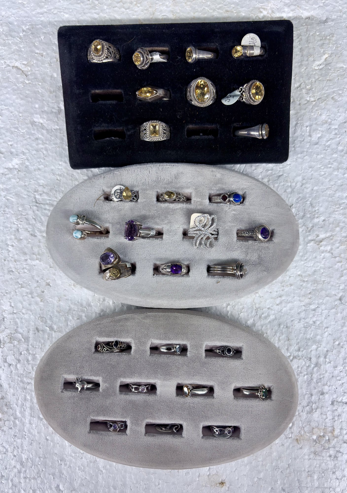 Three Small Trays Of Rings - Sterling With Semi-Precious Stones