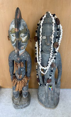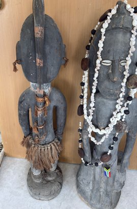 Two Oceanic Tribal Carved Wooden Figures - 35 Inch Tall