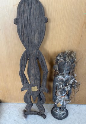 Two Wood Carved African Figures - Tallest Is 28 Inch