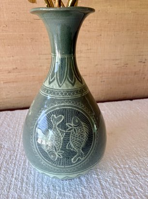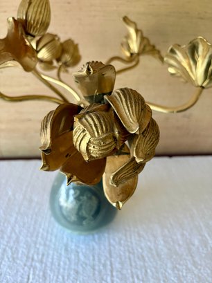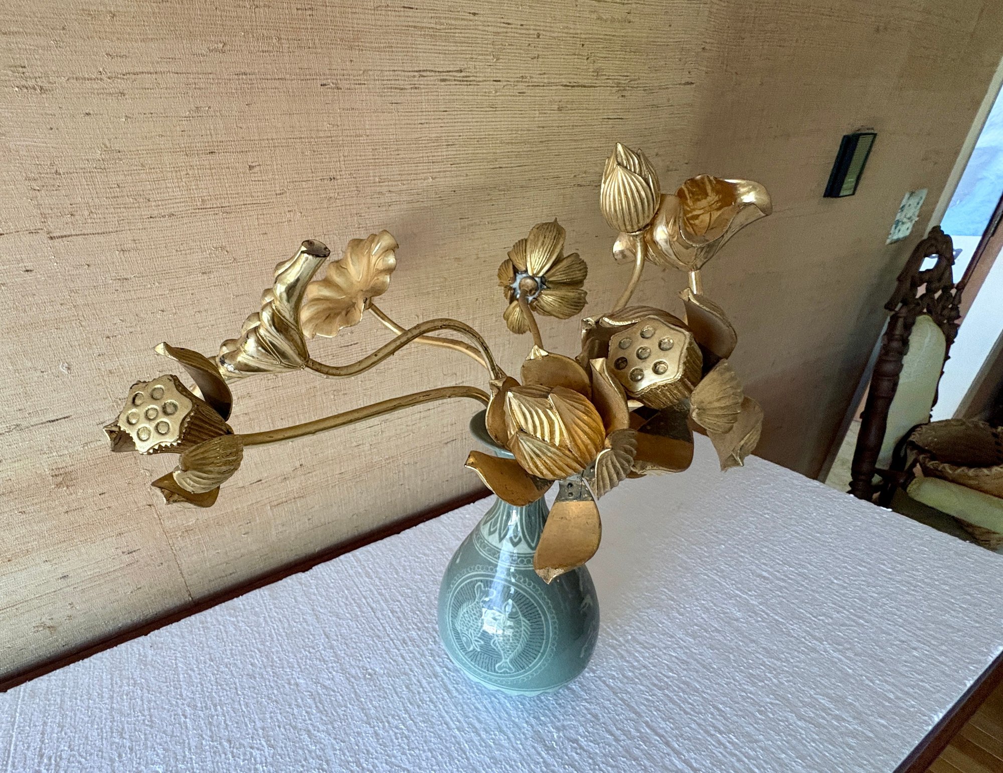 Wood Carved Gold Lotus Flowers In Vase