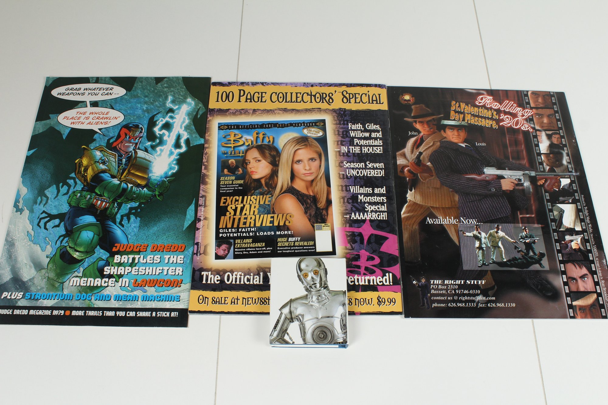 Includes 2000 AD Comic, Angel tv magazine, A Modelers Resource magazine and a Star Wars Mini Book. Items are good condition may have some normal wear and tear. Please see photos for condition