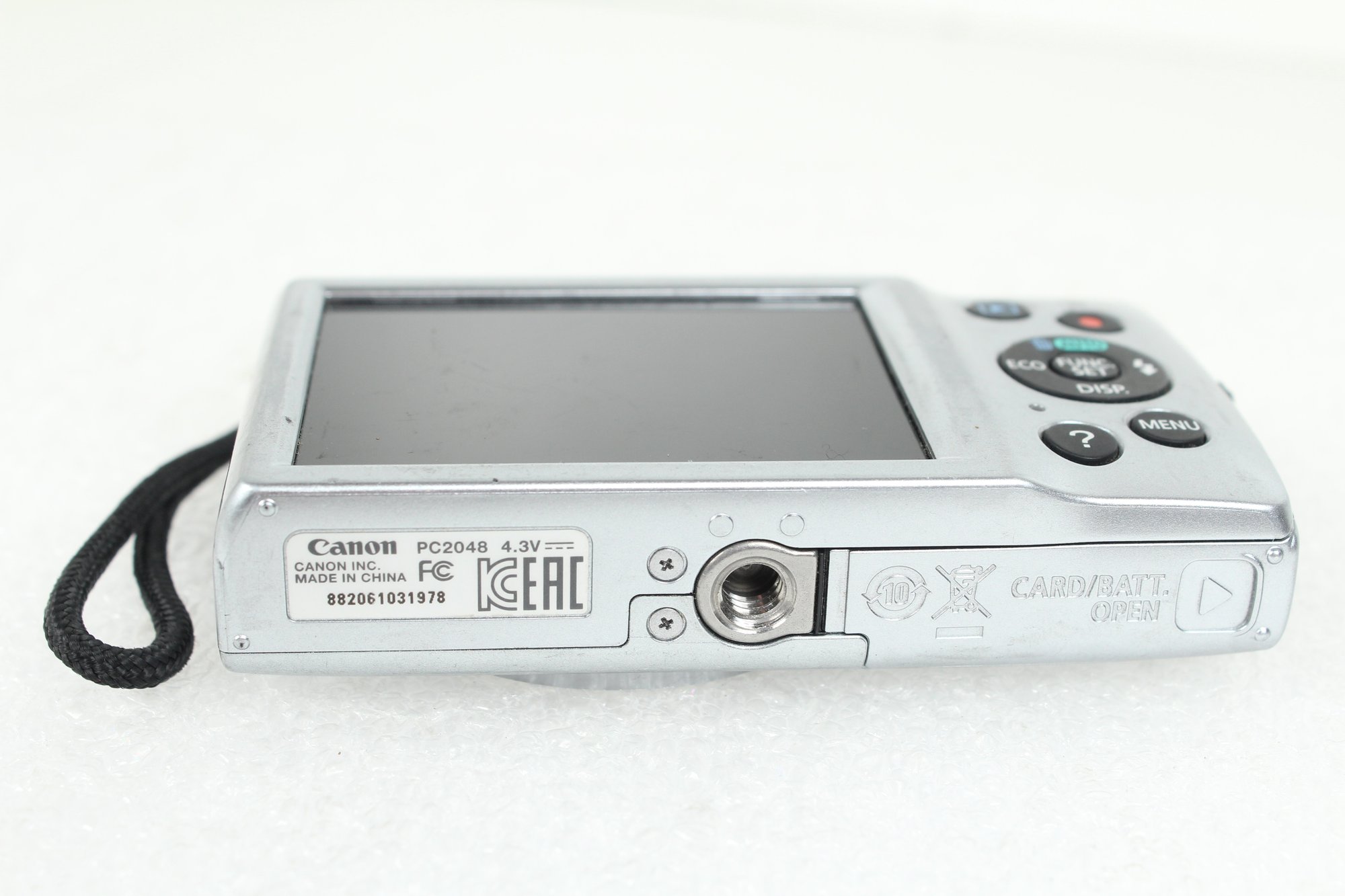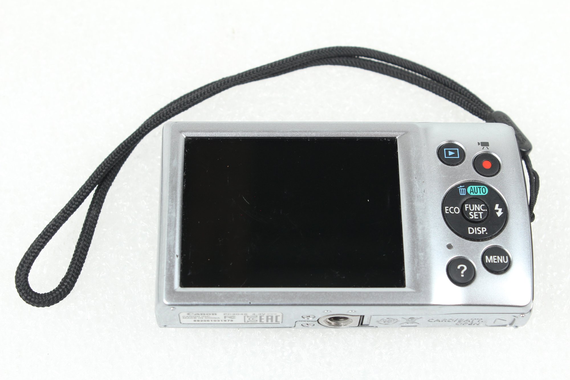 This is a digital still camera with short video capability. It takes a Lithium-ion battery - not included. Upon testing, the screen powers on and was able to navigate various menus and buttons. All buttons seem to work. Zoom works. Flash works. Takes pictures and videos. Able to check photos and videos, then delete from memory card - not included. This camera does not have internal memory. The screen looks good. The body is in good condition with some wear from use. Has a handy wrist strap attached. Does not come with battery, memory card, or any other accessories.