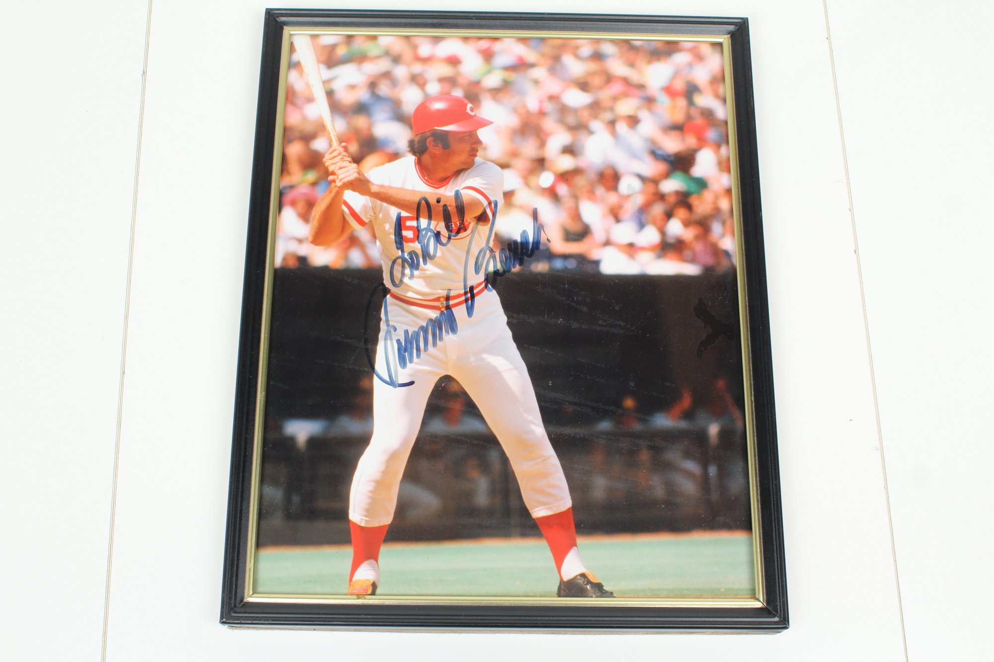 Signed "To Bill Johnny Bench". No COA. Photo measures 10" x 8" with the frame 1/8th inch greater on both dimensions.
