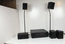 Lot includes receiver, 1 center speaker model SC-C76, 2 rear speakers model SC-A76 and two front speakers with stands and wires model SC-A76. Receiver tested good and all channels work on Aux and Tuner. All five speakers work good.