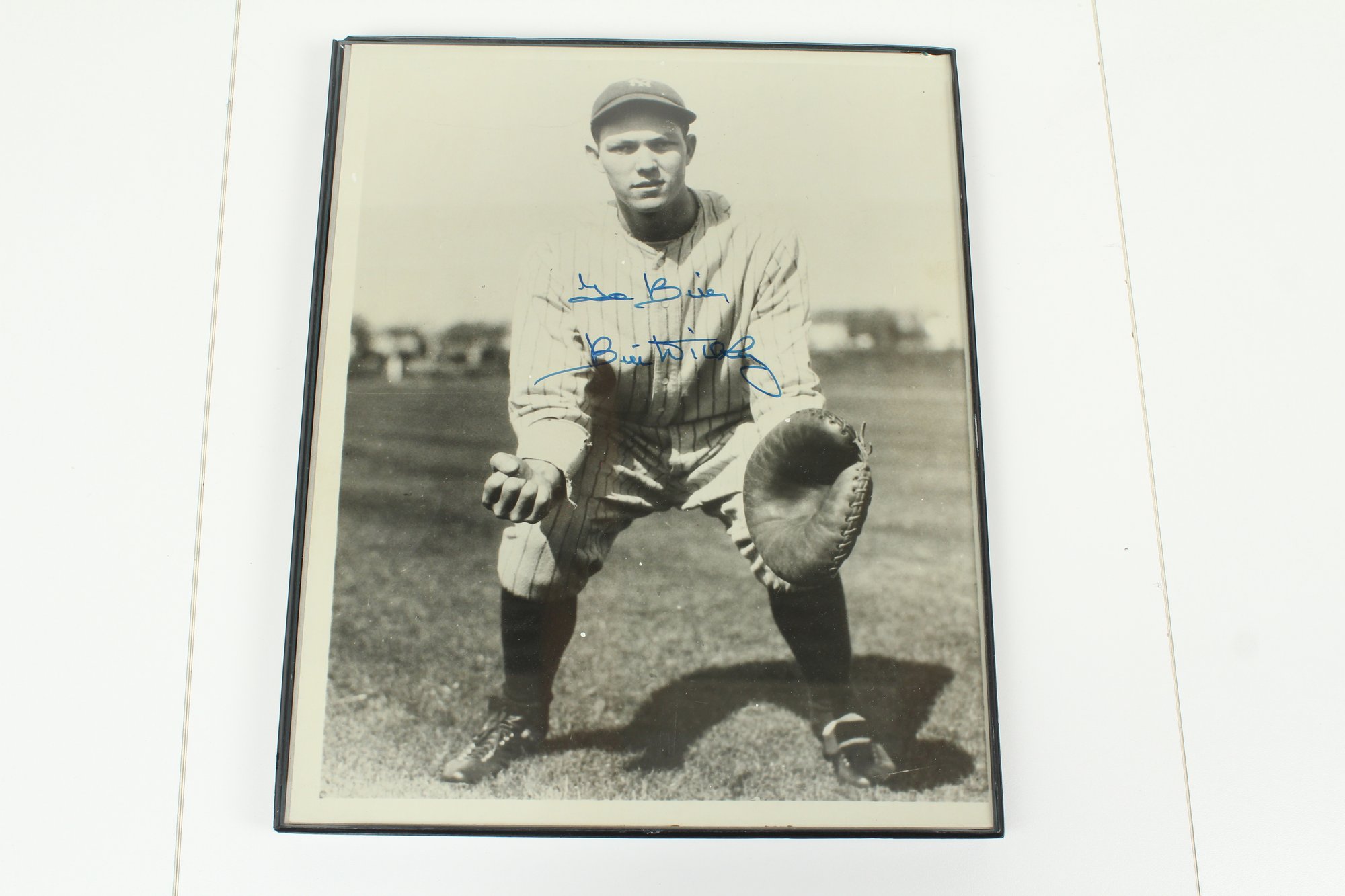Signed "To Bill Bill Dickey". No COA. Photo measures 10" x 8" with the frame 1/8th inch greater on both dimensions.