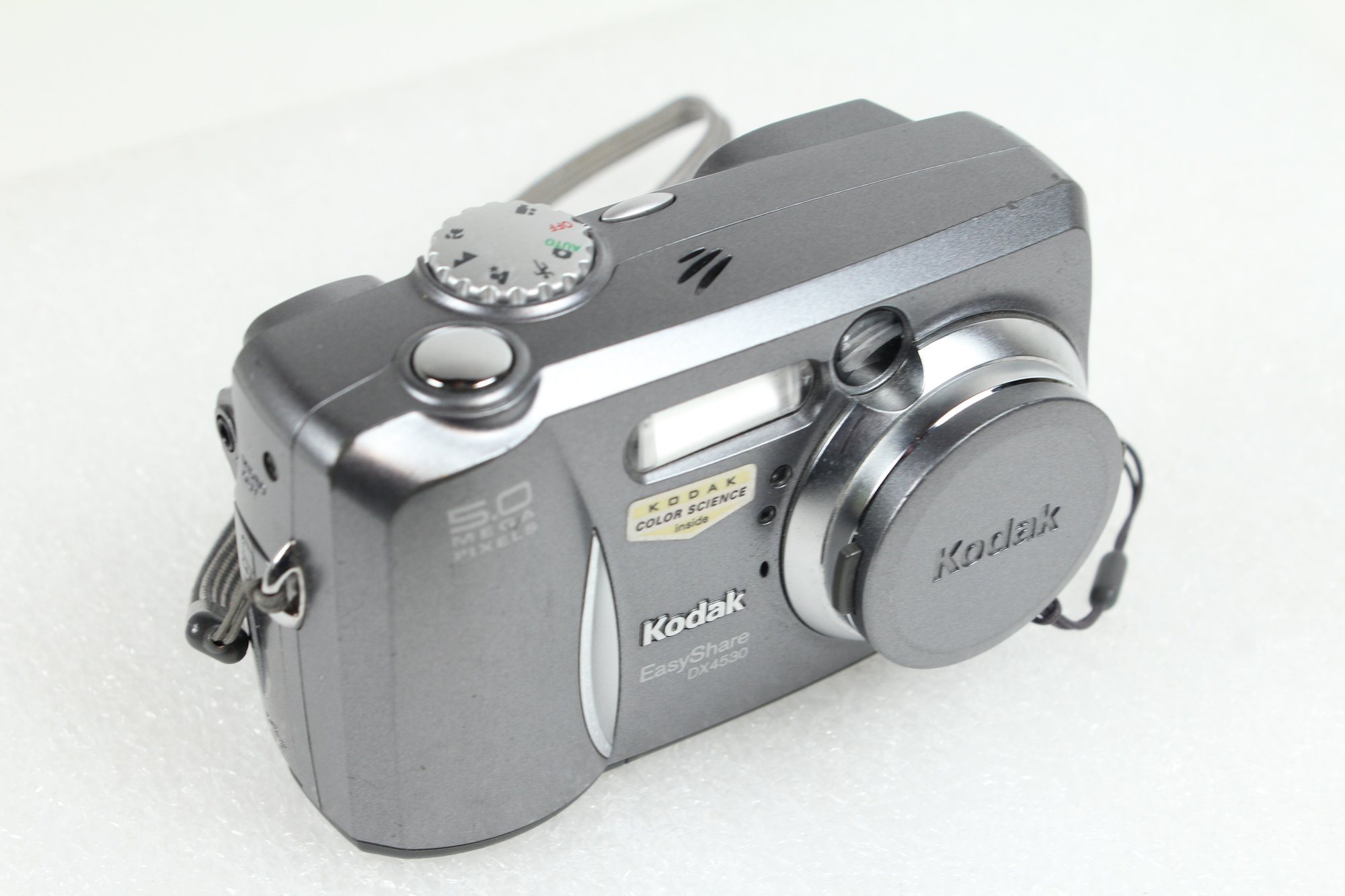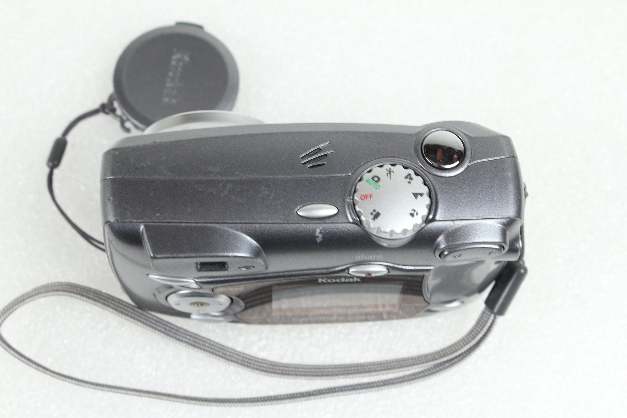 This is an older model digital still camera with short video capability. It takes 2 AA Alkaline batteries - not included. Upon testing, the screen powers on and was able to navigate various menus and buttons. All buttons seem to work. Zoom works. Flash works. Takes pictures and videos. Able to check photos and videos and delete from internal memory. The screen looks good. The body is in good condition with minor wear from use. Camera has a lens cap and wrist strap attached. Does not come with batteries, memory card or any other accessories.