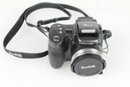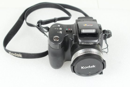 This is a digital still camera with short video capability. It takes 2 AA alkaline batteries. Upon testing, the screen powers on and was able to navigate various menues and buttons. All buttons seem to work. Can switch to different camera options on the wheel. Zoom works. Flash works. Takes pictures with and without flash. Able to check photos and videos, then delete from internal storage. The body of the camera is in good condition with scuffs and scratches from use, and some of the labels are worn a little. Comes with a neck strap and lens cap attached. Does not come with memory card, batteries, or any other accessories.