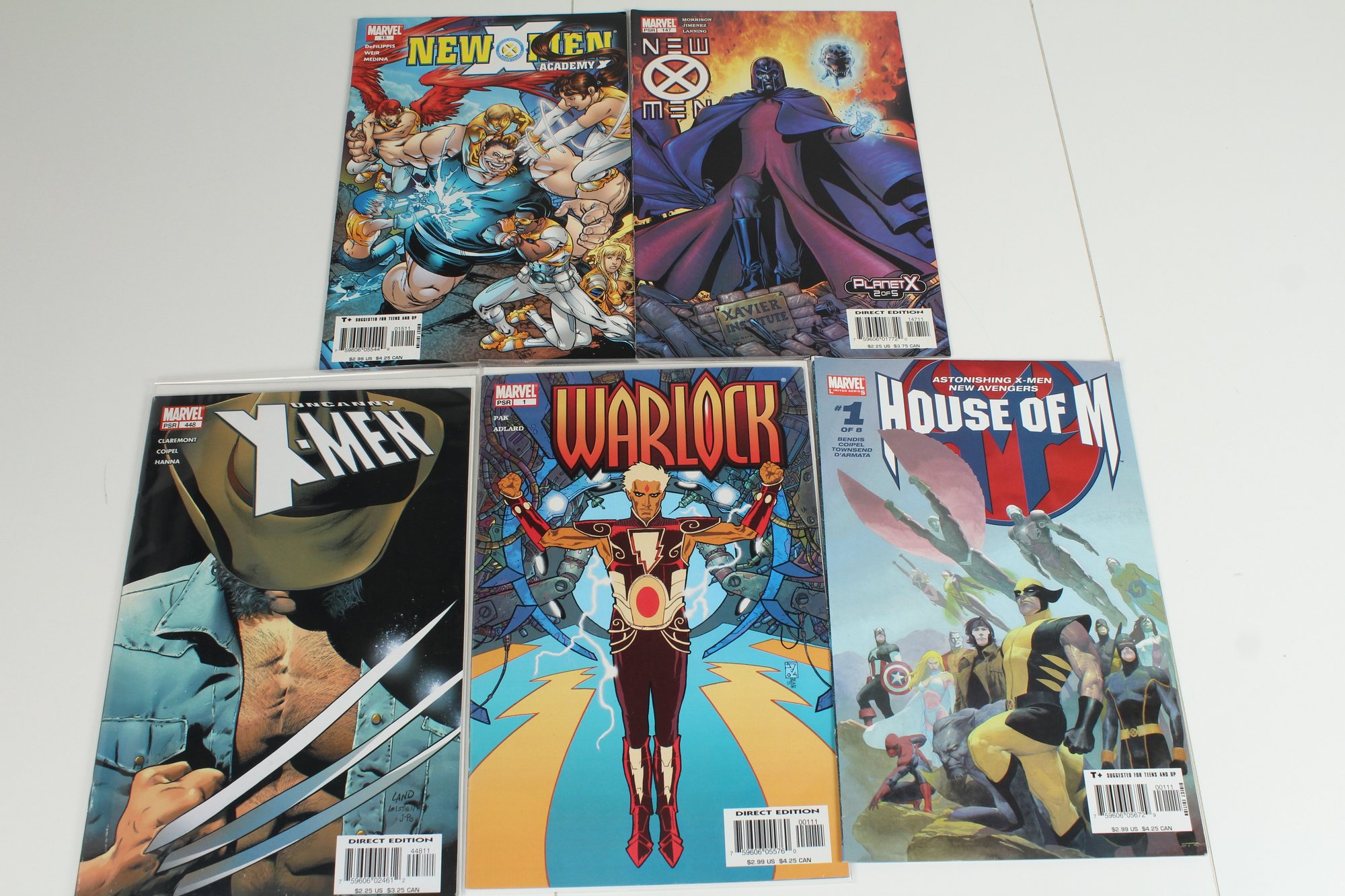 This is a lot of 20 assorted comics. Features X-Men, Wolverine, house of M, Thunderbolts, Avengers, Warlock, & More. All comics are in good condition, great reader copies. May have some damaged corners and wear. 7 comics are bagged and backed. Please see photos for condition