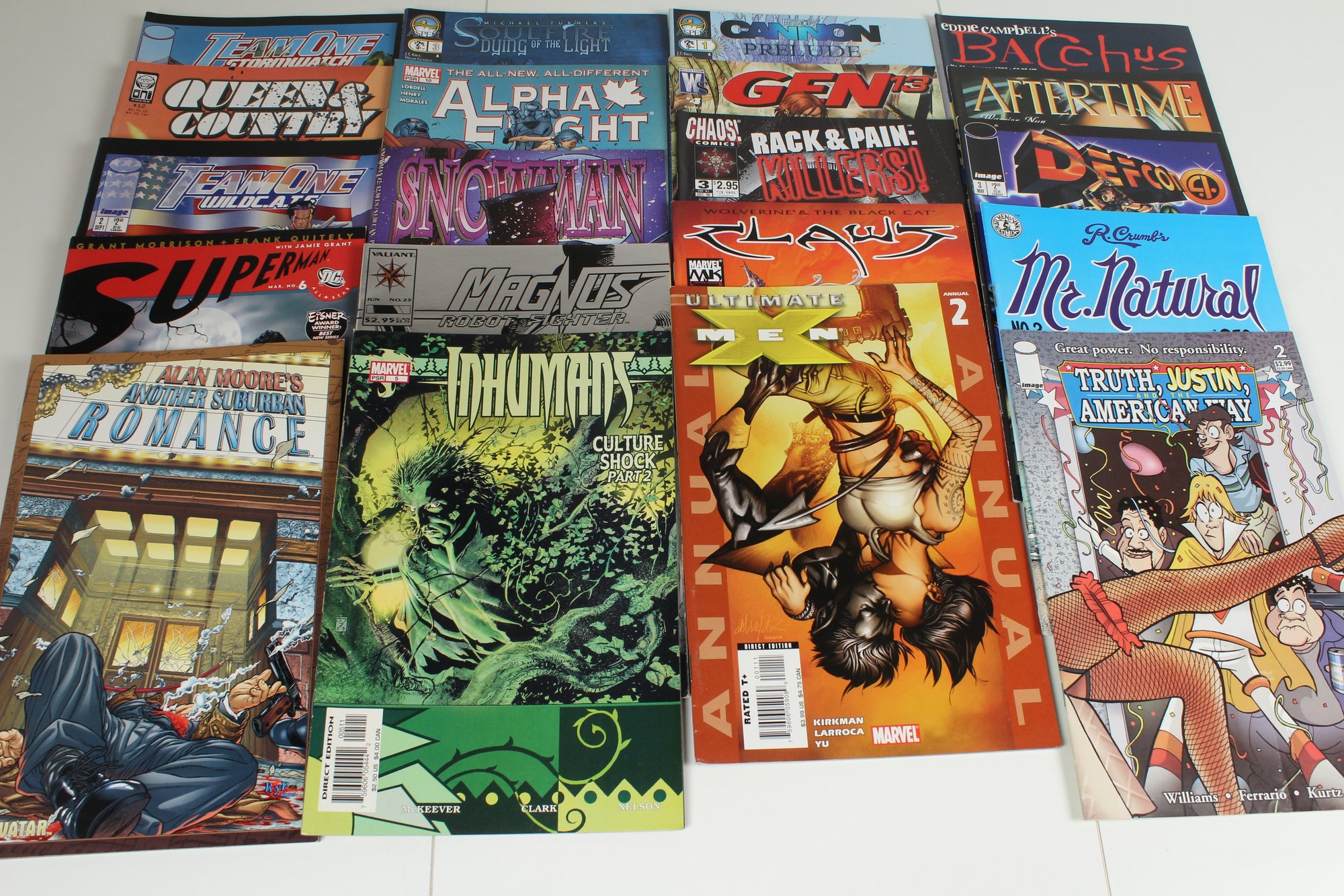 This is a lot of 20 mostly independent assorted comics. Features Defcon 4, Claws, Magnus, Westerns, Superheroes & More. All comics are in good condition, great reader copies. May have some damaged corners and wear. Please see photos for condition