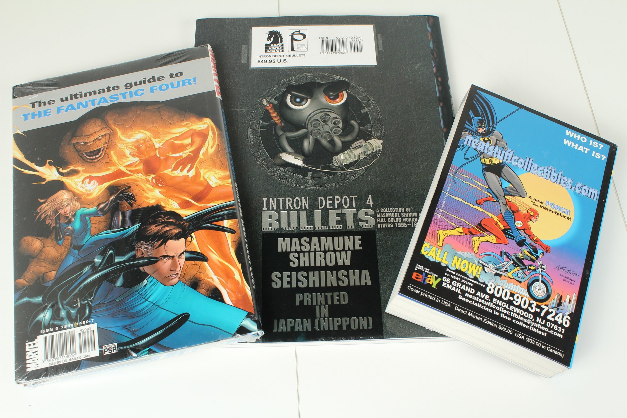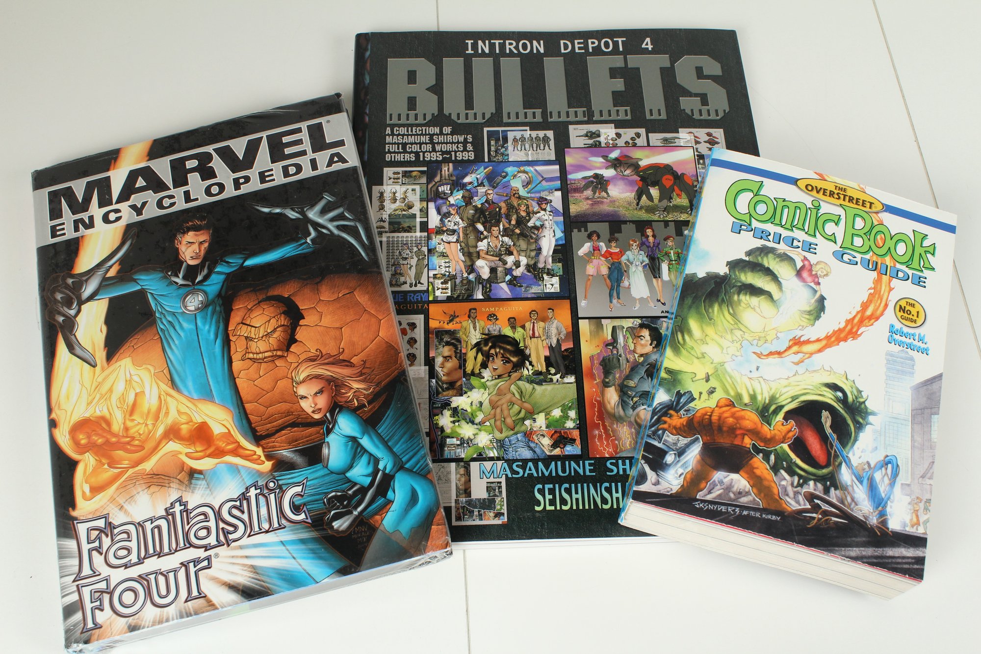 Includes Three books. Includes Comic Book Price Guide 31st Edition, New Fantastic Four Marvel Encyclopedia, Masamune Shirow's Bullets Art Book. Books are good condition may have some normal wear and tear. The Encyclopedia is sealed in plastic. Please see photos for condition