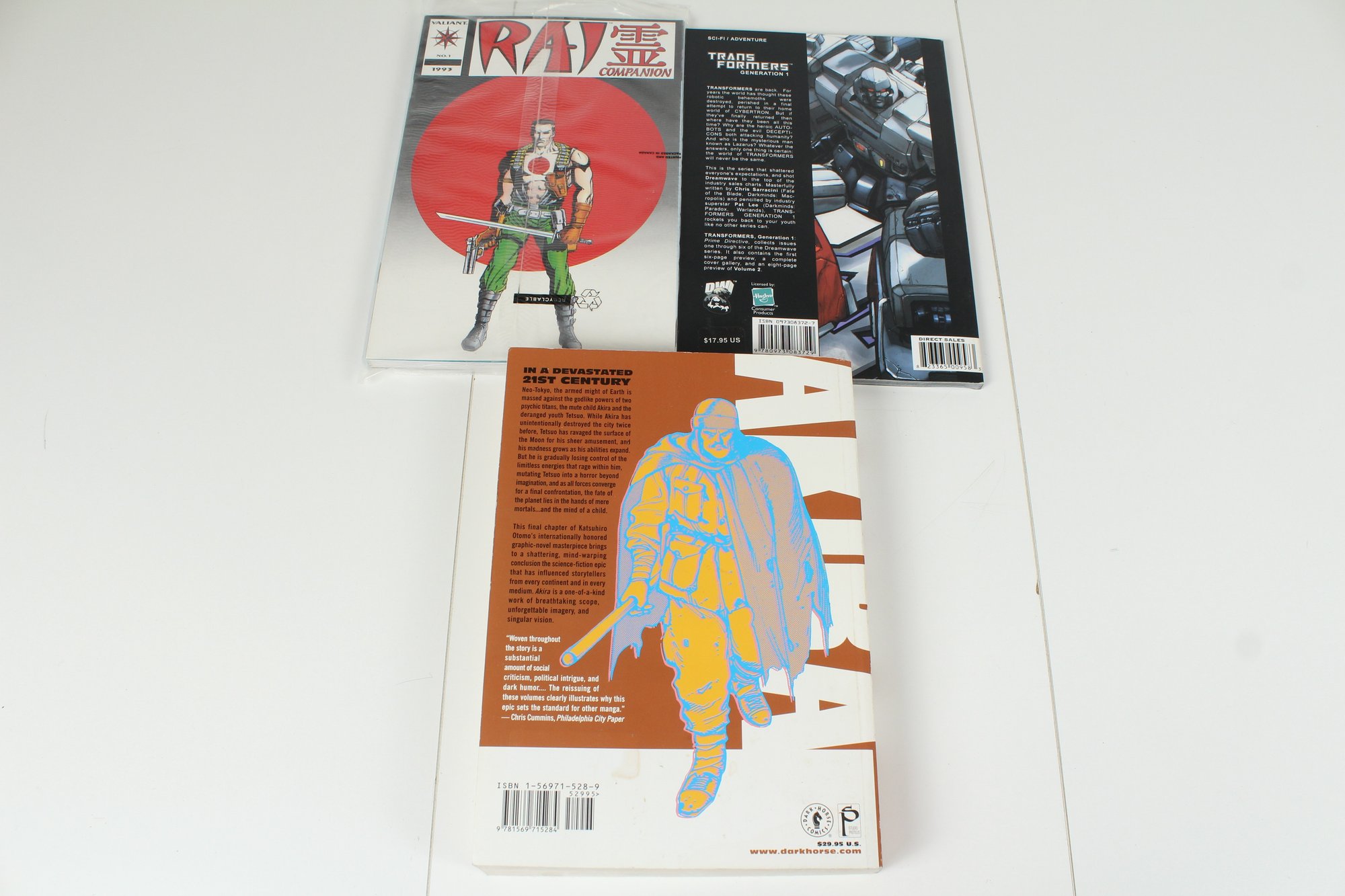 Lot of 3 Graphic Novels. Includes Akira, Transformers & Rai with companion comic sealed in plastic. Books are good condition may have some normal wear and tear. Please see photos for condition
