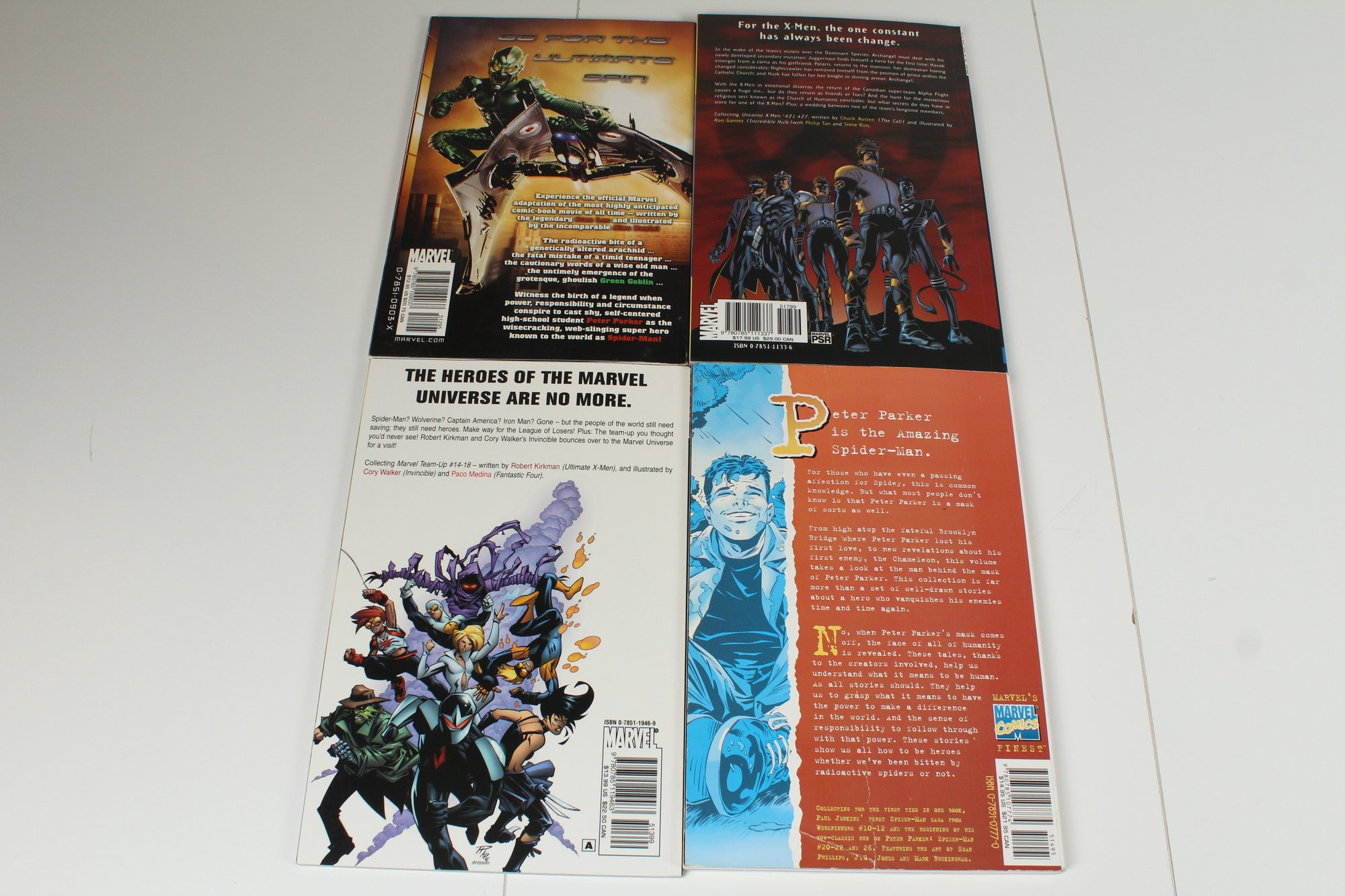 Lot of 4 Graphic Superhero Novels. Includes 2 Spiderman, X-Men, & Marvel Team Up. Books are good condition may have some normal wear and tear. Please see photos for condition