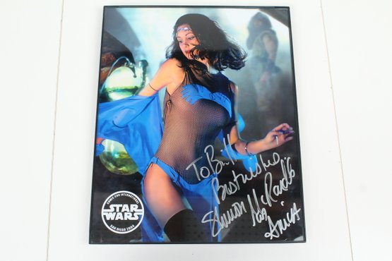 Signed "To Bill Best wishes! Shannon McRandle Arica". Promotional photo from 2004 Comic-Con in San Diego, CA. No COA. Photo measures 10" x 8" with the frame 1/8th inch greater on both dimensions.