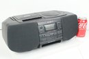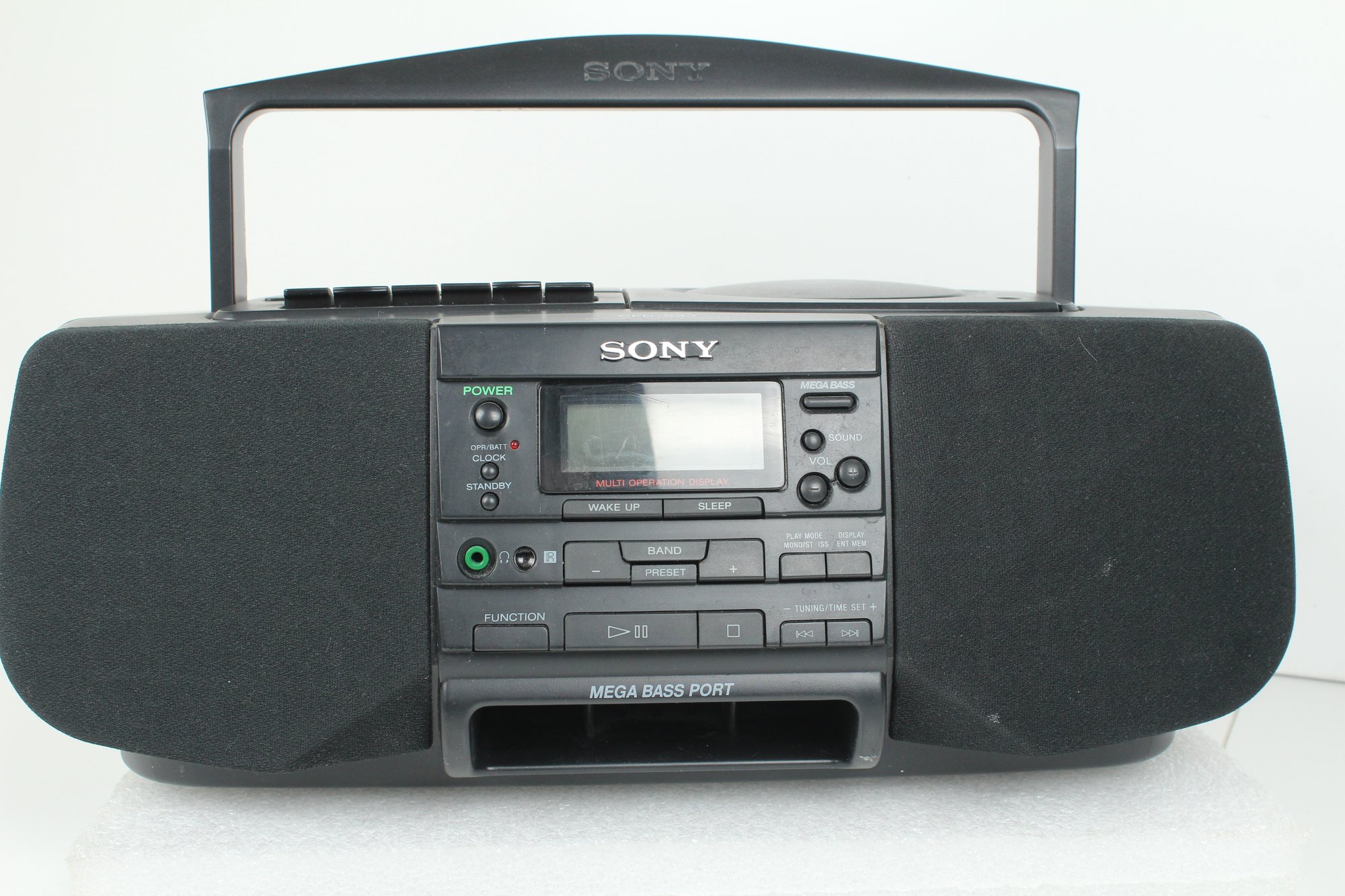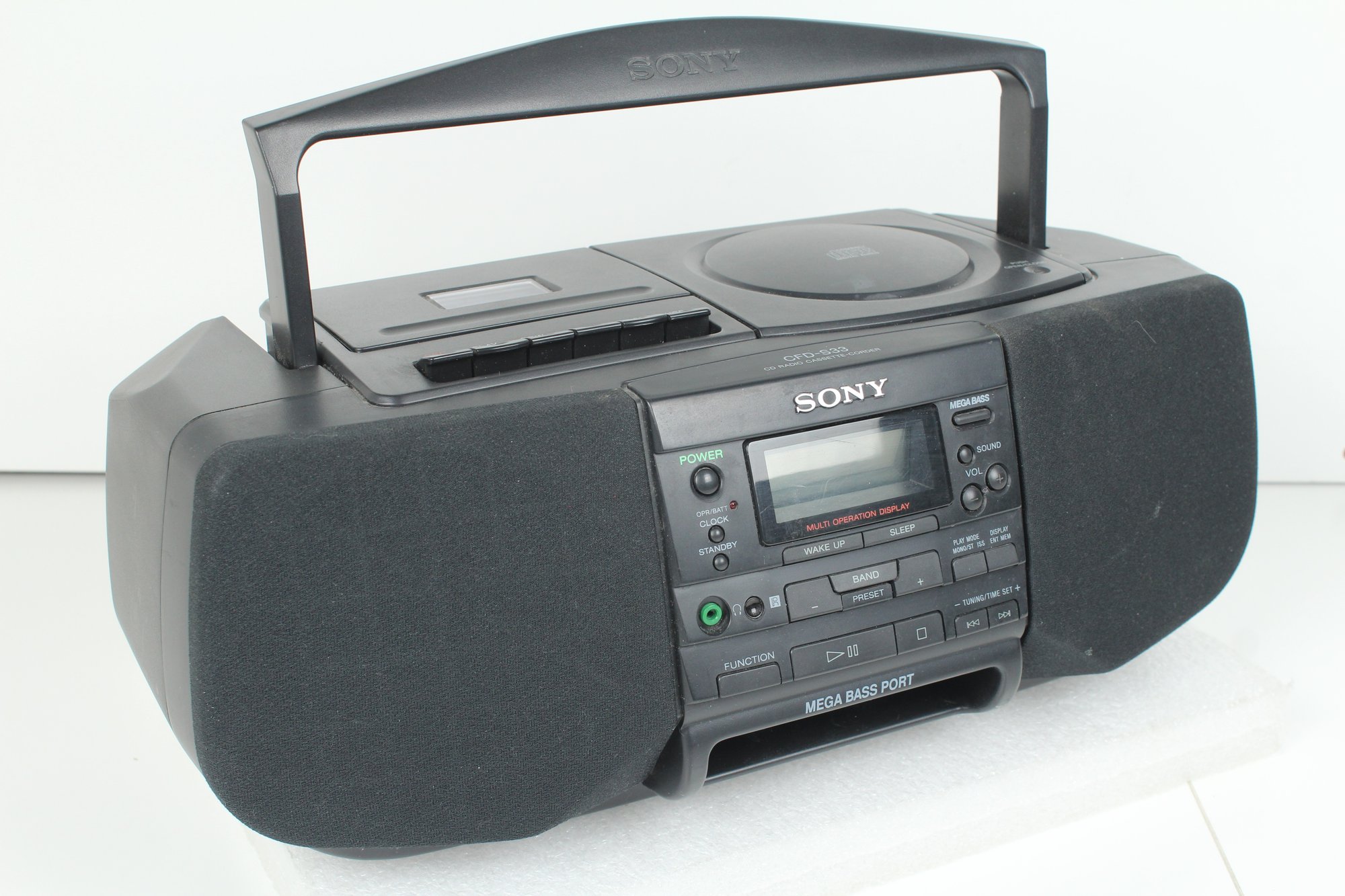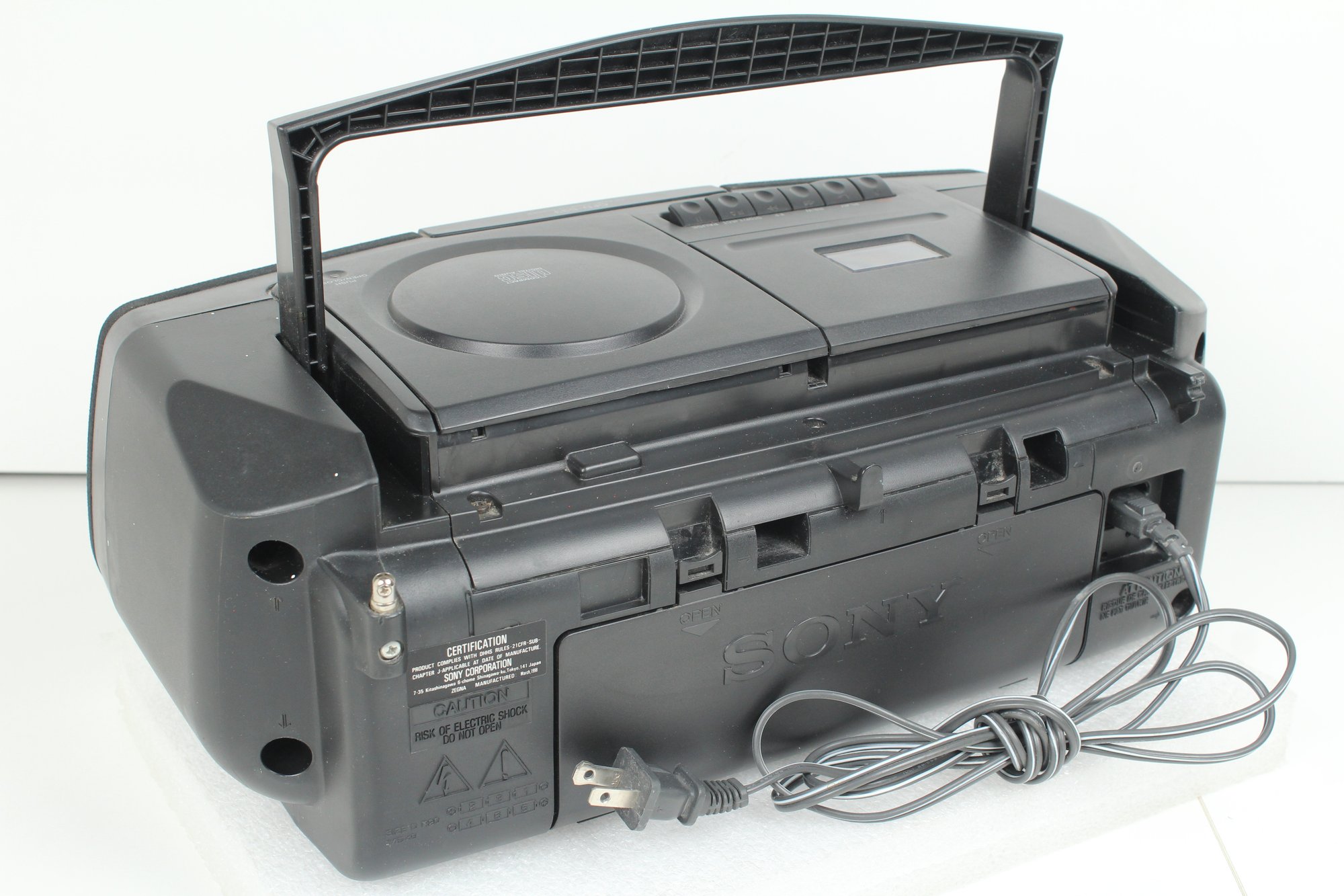 Tested and radio works but has distortion in the audio. Cassette Player works fine on playback, FF and RW. CD Player works. Record on cassette not tested. Antenna is broken off. Comes with power cord. No Shipping