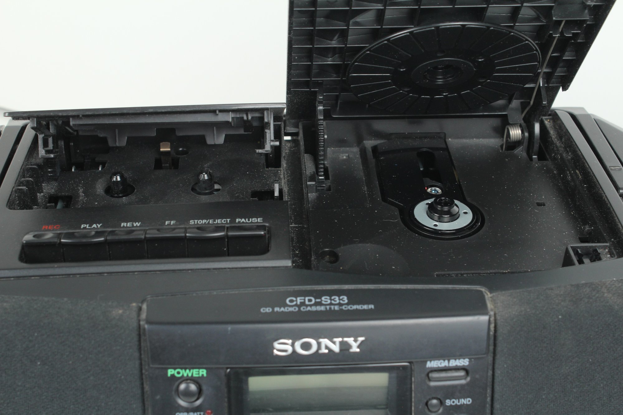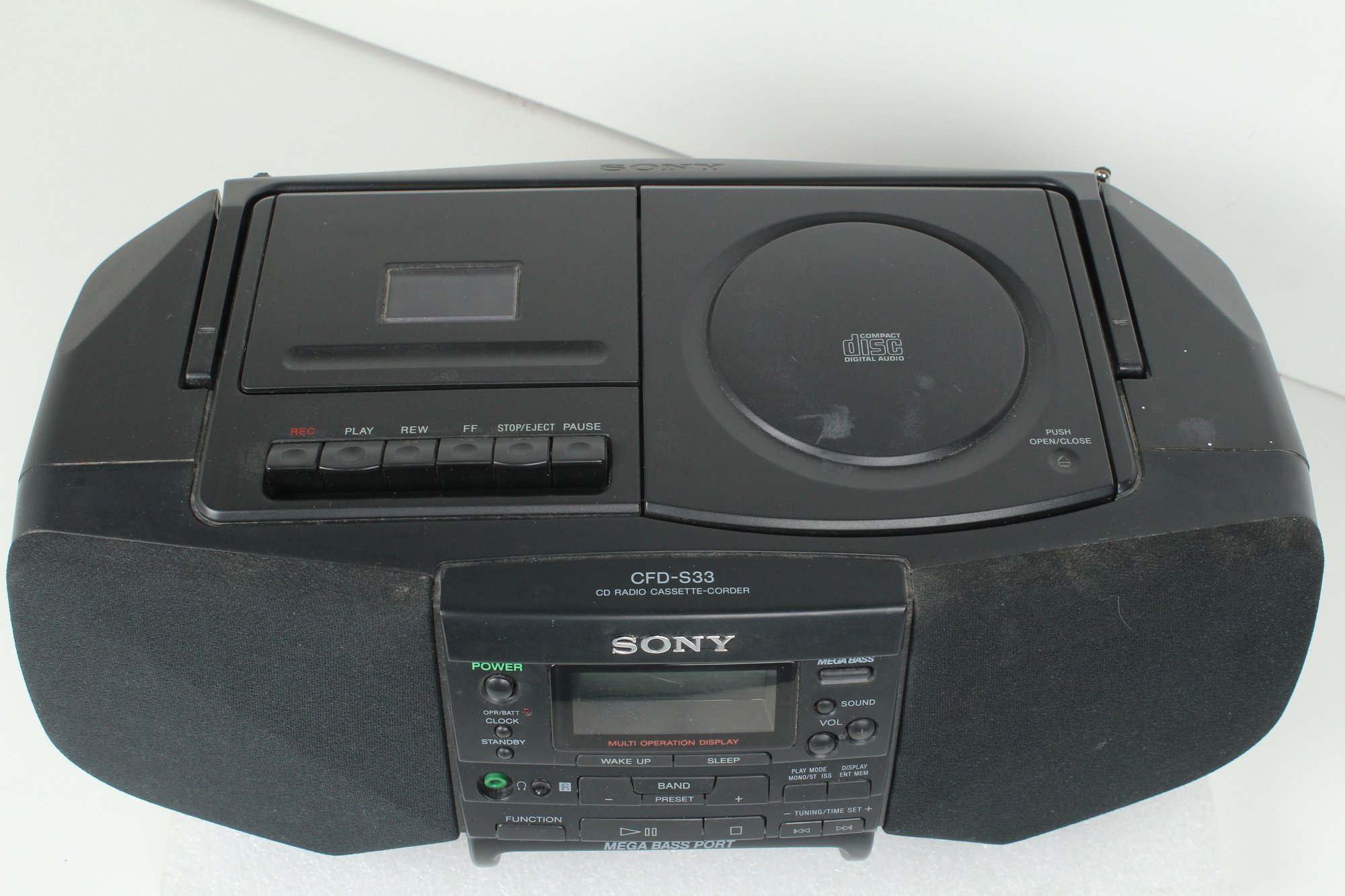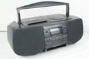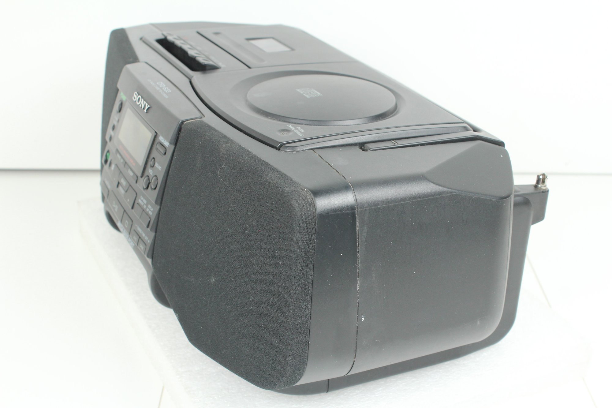 Tested and radio works but has distortion in the audio. Cassette Player works fine on playback, FF and RW. CD Player works. Record on cassette not tested. Antenna is broken off. Comes with power cord. No Shipping