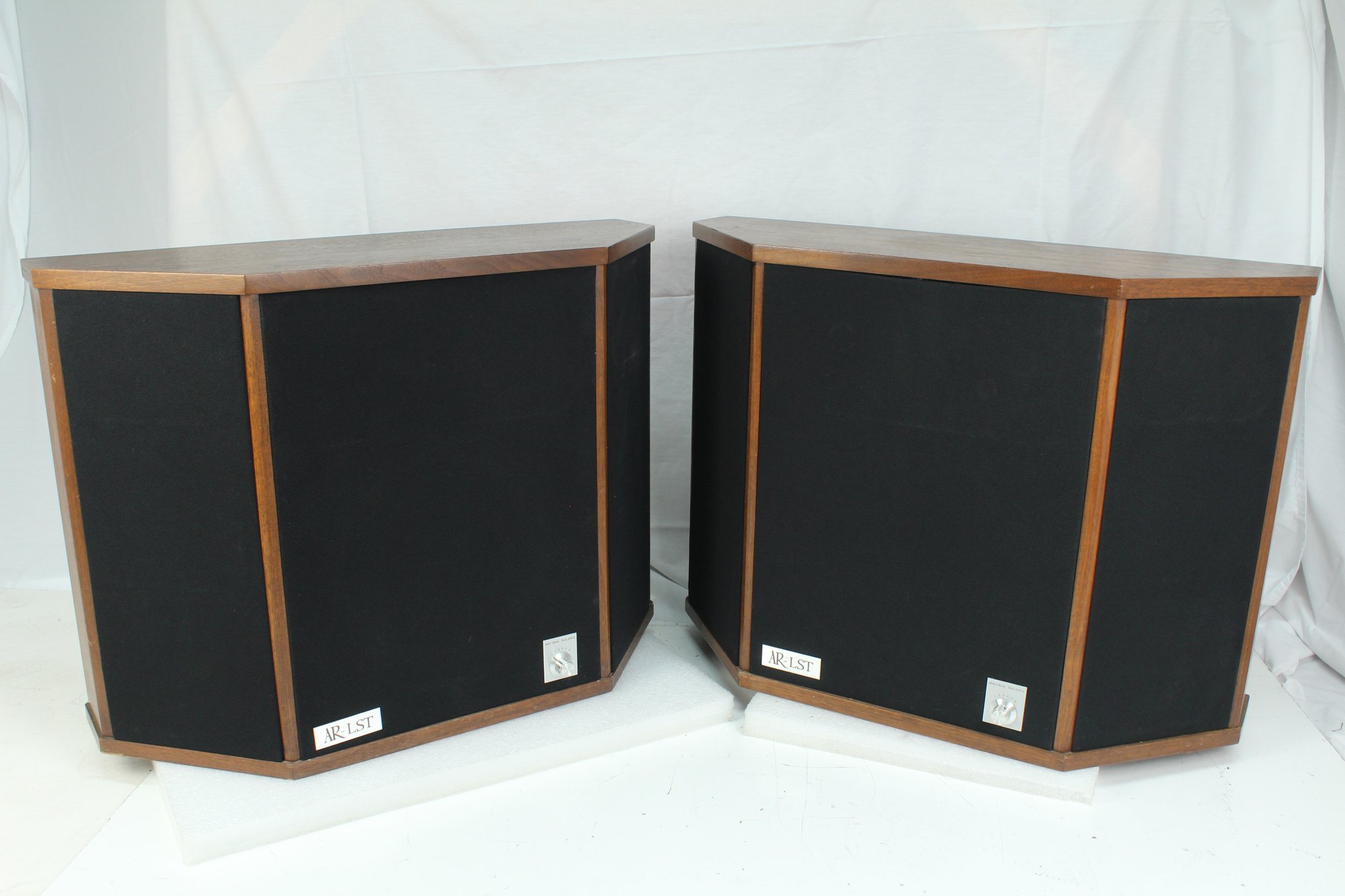 Both speakers tested and they are working. All the drivers are working except for one tweeter on the one with serial number 1026. Woofers have been refoamed with some kind of glue instead of foam and don't sound right. Will need to be re-foamed with proper foam. Tweeter fuses in the front have been replaced with current limiting light bulbs and grills have been recovered with black fabric. Comes with user manual, two AR catalogs and two pairs of banana plugs. Each speaker measures 20 inches high, 27 inches wide and 10 inches deep and each one weighs about 80 lbs so they are HEAVY. No Shipping.